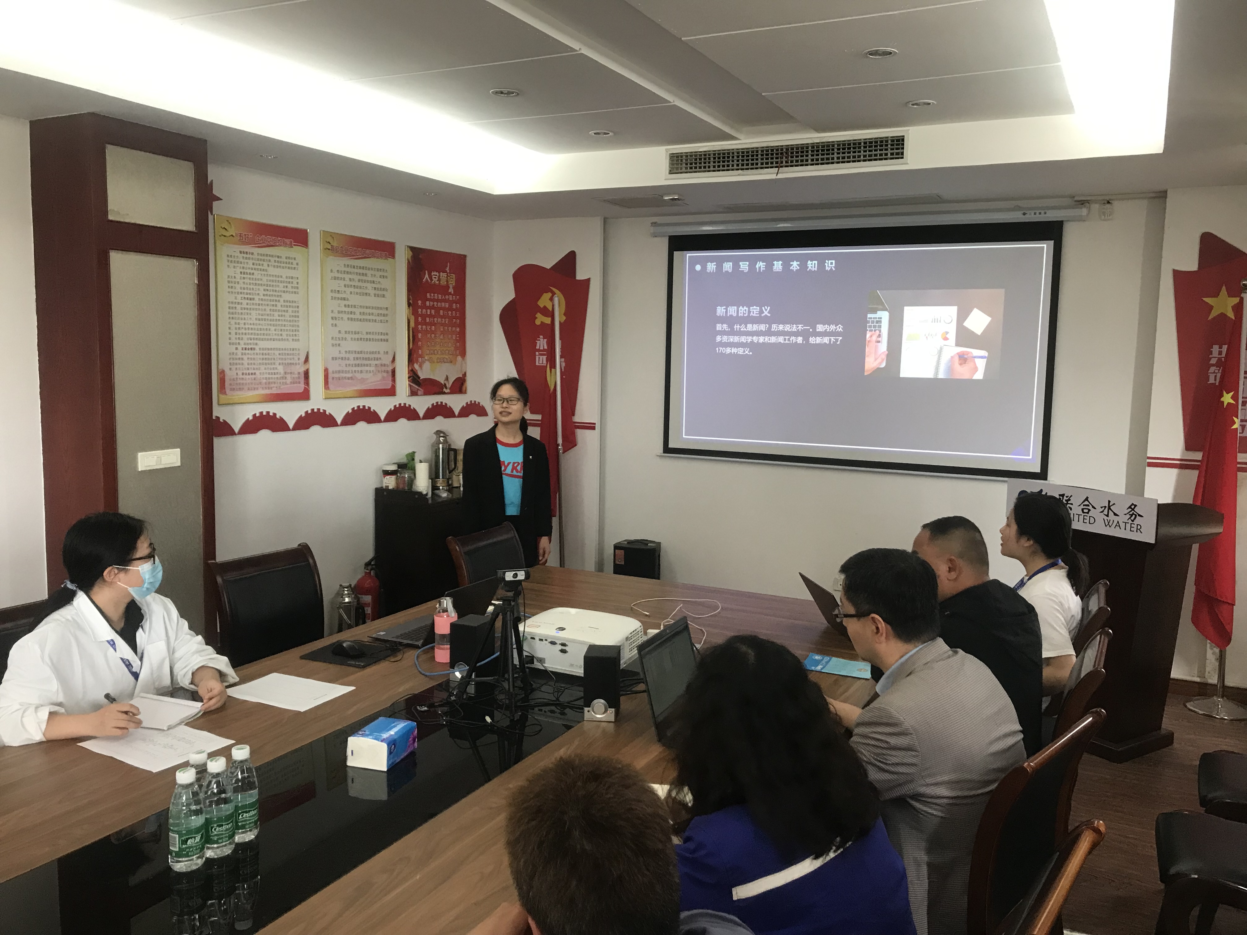 下午2點,培訓正式開始。張老師首先帶領大家學習《聯合水務集團宣傳投稿管理暫行辦法》,了解聯合水務集團統一的稿件撰寫要求、投稿流程、審稿規則以及獎勵辦法等。熟悉要求之后,就正式進入如何寫好新聞稿件的重頭戲。張老師用通俗易懂的語言、豐富的事例,從新聞寫作基本知識、企業新聞分類以及新聞寫作基本技巧三個方面入手,深入淺出地講解了新聞稿的五要素,會議類、活動類、領導視察調研類等稿件撰寫的技巧和注意事項,每講解一個類型的稿件都會通過事例來具體分析,同時,為活躍培訓氛圍,幫助大家更好的理解,張老師時不時通過提問和現場解答的方式與大家互動。