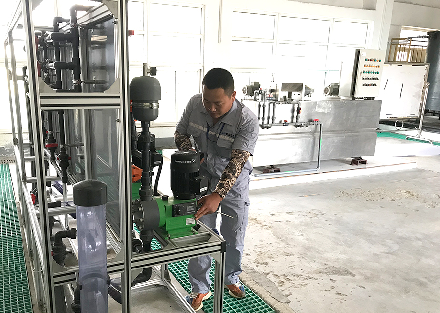 圖:機(jī)電設(shè)備部工作人員正在對(duì)供水設(shè)備進(jìn)行維護(hù)保養(yǎng)