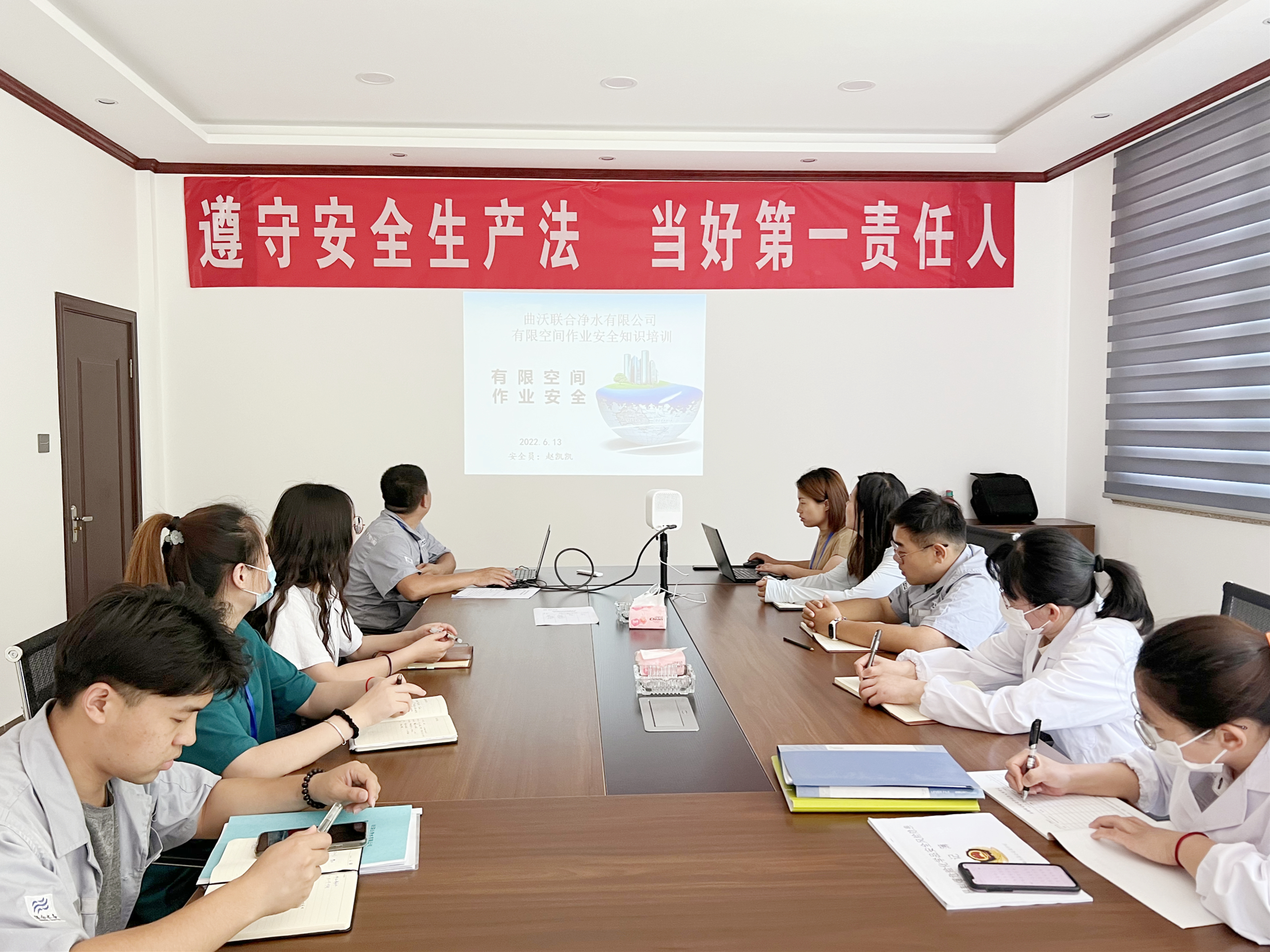安全,是我們無時無刻都在關注的話題,它不僅是我們企業生產經營順利開展的前提,也是我們幸福生活的基礎。為了全面提升全廠職工安全生產意識,積極開展2022年“安全生產月”活動,認真貫徹落實習近平總書記的重要指示精神,6月13日,曲沃聯合凈水有限公司緊繞“遵守安全生產法,當好第一責任人”安全生產月主題,多措并舉開展安全生產月系列活動,讓安全發展理念更深入人心。 13日,公司開展有限空間作業知識培訓活動,并組織員工觀看2022年安全生產月主題宣講片《警鐘》。讓有限空間作業人員全面掌握相關的專業知識,提高有限空間作業人員技能素質,增強員工的安全生產意識,夯實安全基礎,防止發生人身傷害事故。
