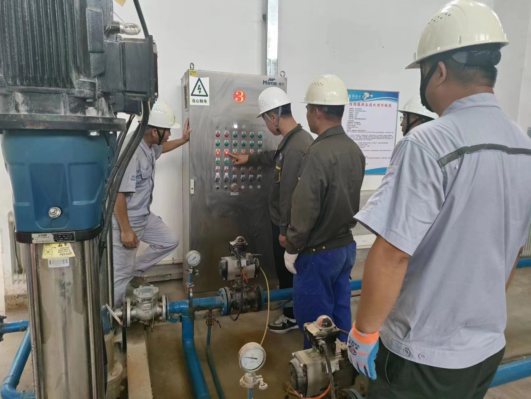強化安全管控,消除安全隱患。安全員及生產人員一同對廠區重點作業現場、重點設備進行安全巡檢,重點檢查各點位滅火器檢查記錄卡是否及時更新,滅火器是否損壞,保證消防設施使用狀態良好。 為了提高設備的使用性能,安全員對二沉池、生化池、消毒池設施進行了全面排查,對管道閥門進行松緊調試,檢查水位是否超高或過低、檢查水泵的電壓、電流、功率等,確保設備正產運轉。 寧夏鴻澤凈水公司 中秋佳節期間,寧夏鴻澤凈水公司嚴格落實值班值守制度,各崗位人員各司其職,做好安全生產和服務保障工作,以高度的責任心和認真的工作態度,為企業生產運行出一份應有的力量。
