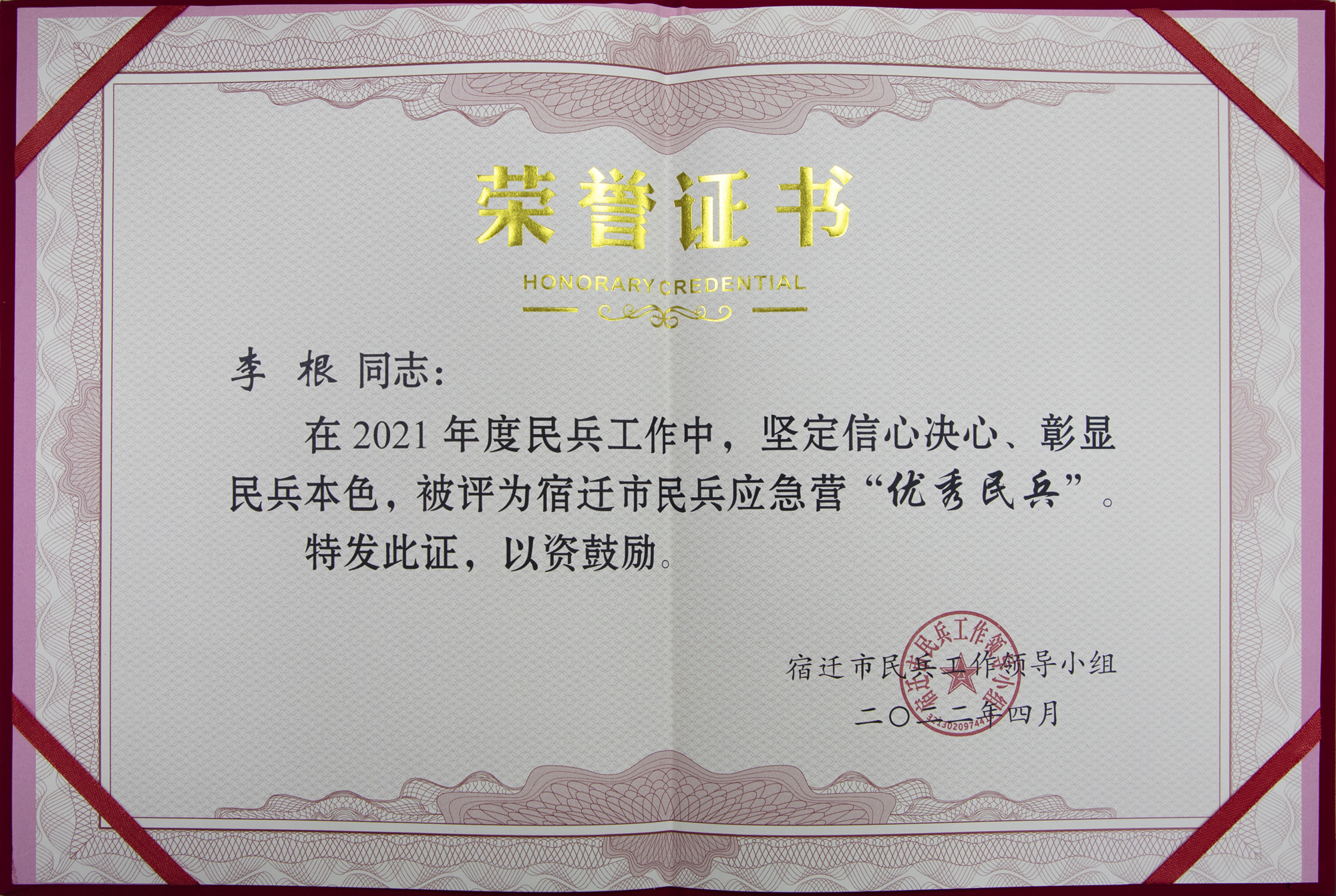 民兵,作為中國人民解放軍的重要助手,是維護國家安全穩(wěn)定不可或缺的國防力量。江蘇聯(lián)合水務(wù)科技股份有限公司宿遷供水公司做為宿遷地區(qū)重要的民生企業(yè)一直以來高度重視民兵建設(shè)工作,連續(xù)多年選派優(yōu)秀員工投身民兵隊伍,切實扛起企業(yè)民兵建設(shè)的責(zé)任擔(dān)當(dāng)。近日,我公司李根同志在民兵軍事訓(xùn)練過程中表現(xiàn)突出,成績優(yōu)異,被宿遷市民兵工作領(lǐng)導(dǎo)小組評為宿遷市民兵應(yīng)急營“優(yōu)秀民兵”。這不僅是對李根個人能力與素質(zhì)的肯定,也是對公司多年來支持民兵建設(shè)工作的認(rèn)可。