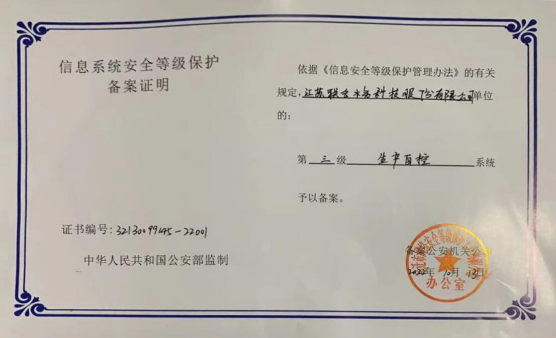 等級保護是我國信息安全基本國策,是落實監管要求的重要舉措,江蘇聯合水務科技股份有限公司宿遷供水公司將會繼續做好信息網絡安全工作,嚴格落實國家相關網絡安全法規要求,提升網絡安全防護能力和水平,為全市供水提供堅實的安全保障。