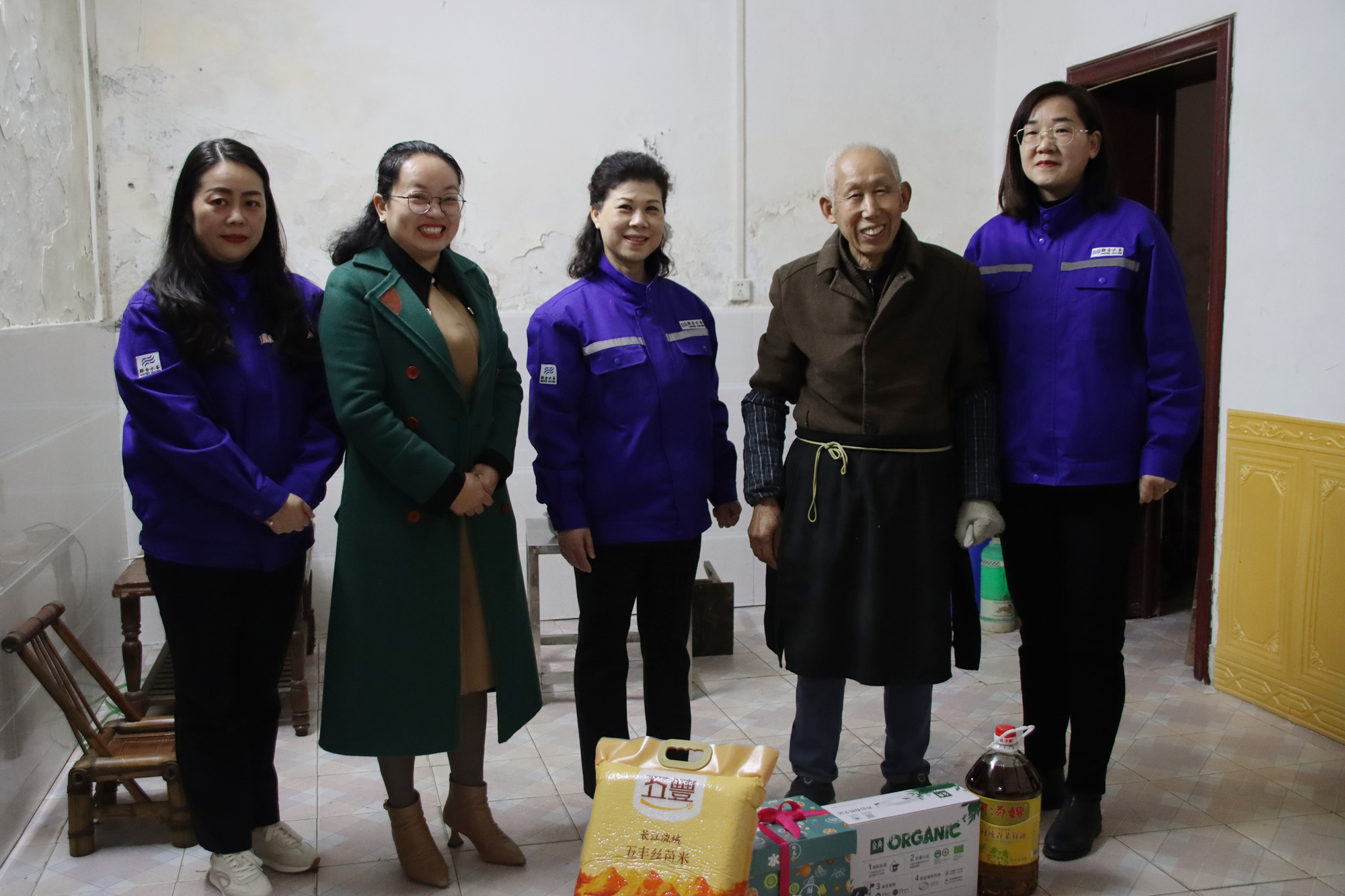 這次活動主要是為孤寡老人、空巢老人提供生活用水幫助。在花壇社區的幫助下,咸寧聯合水務有限公司志愿者們帶著愛心物資走訪了三位獨居困難老人!澳匠<抑杏盟绾?”“是否有漏水現象?”“老人家要多保重身體,有什么用水困難隨時聯系我們!碧湛傄灰蛔屑氃儐柪先藗兊纳眢w狀況、家庭情況和用水情況,給老人們送去真誠的關心與問候。