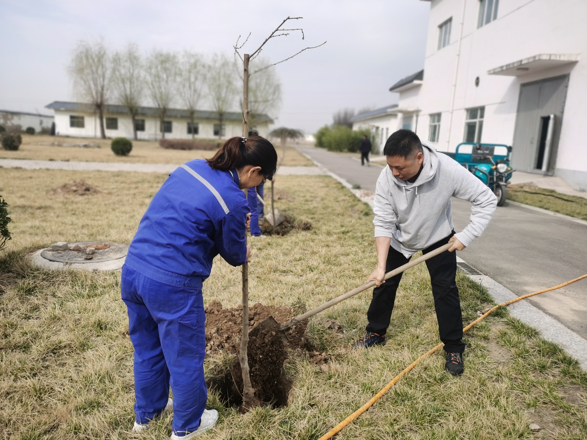 新絳公司總經理劉紹光號召員工要以營建“員工林·認養一棵樹 ”為良好契機,共同努力把新絳晉華和國龍公司打造成一座歷久彌新、生機勃勃的環保模范廠區。春風吹拂,陽光照耀。公司領導和員工們紛紛拿起鋤頭、鐵鍬、水桶等工具涌向員工林,有的揮鍬鏟土,有的扶苗填坑,有的踏土夯苗,有的澆灌樹木......經過一個小時的辛勤勞動,共挖樹坑30余個,栽植桃樹、蘋果樹、杏樹等30余棵,放眼望去,連片的樹苗錯落有致、亭亭玉立,盡顯一片盎然生機。聯合水務人正通過自己的實際行動,踐行為“青山”守護一份綠,為生活營造一份美。