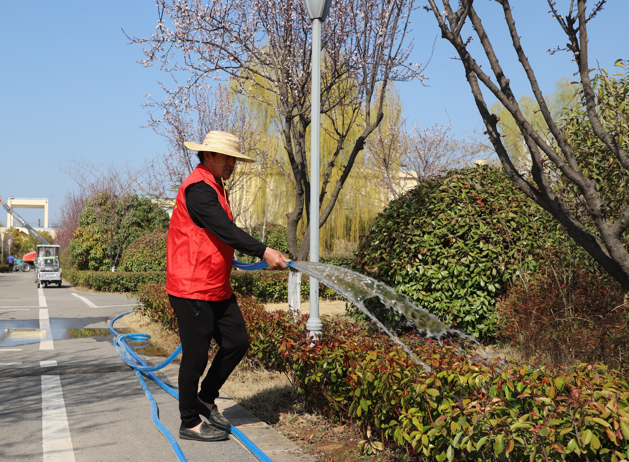 近日,聯合水務宿遷供水公司搶抓春季綠化養護好時機,對廠區實施綠化養護行動,提升公司環境,打造美麗廠區新形象。一直以來,公司實行廠區衛生分片包干責任制,全體員工參與廠區衛生環境管理,積極踐行主人翁精神,共同攜手讓美麗廠區“靚”起來。盎然生機的春色,在不經意間布滿了廠區每一處角落,湖邊的垂柳迎風搖曳,春風裹挾著綠意,映襯著廠區的生機和活力,也催促著水務人昂揚奮進。