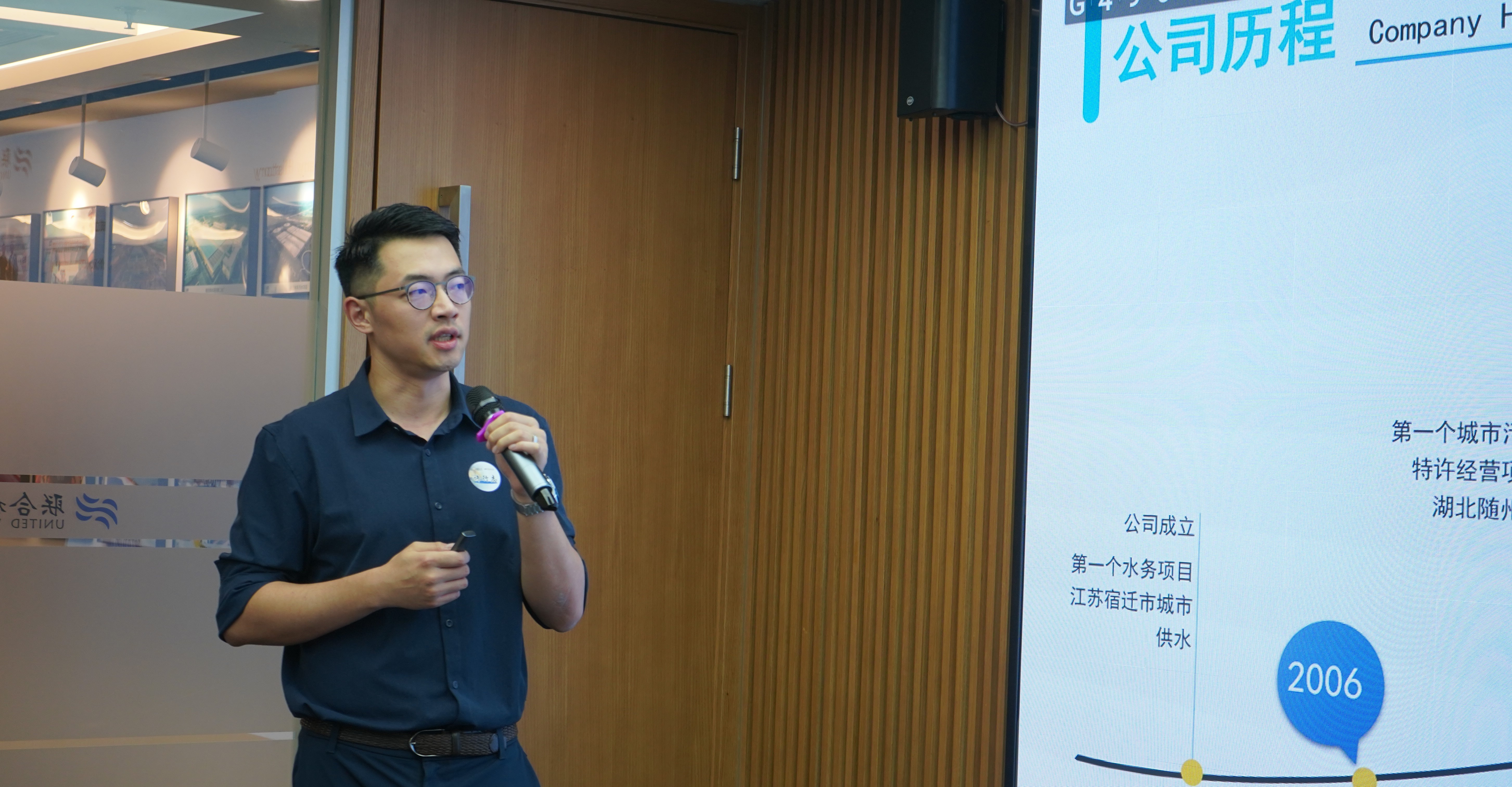 在大家共同觀看了聯合水務公司宣傳片后,主持人李子強學長請出聯合水務的董事會秘書許行志,為大家介紹公司的基本情況。