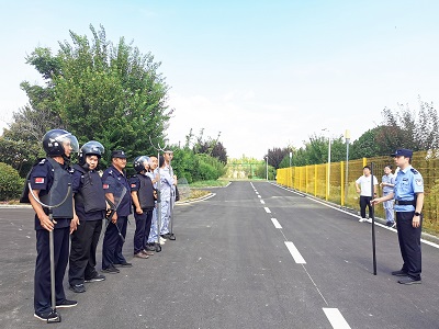 8月2日上午,三門峽公司的安保人員及生產運行人員在辦公樓前一字排開,禹王路派出所的民警向現場人員介紹了反恐防暴知識,講解防暴盾牌、防暴鋼叉、警用長棍等防暴器材在實戰過程中的正確使用方法,并現場教授了攻防技能和系列動作要領。現場人員在民警同志的指導下,3人一小組,反復練習防護盾牌與鋼叉的有效配合,為即將開始的模擬演練做準備。