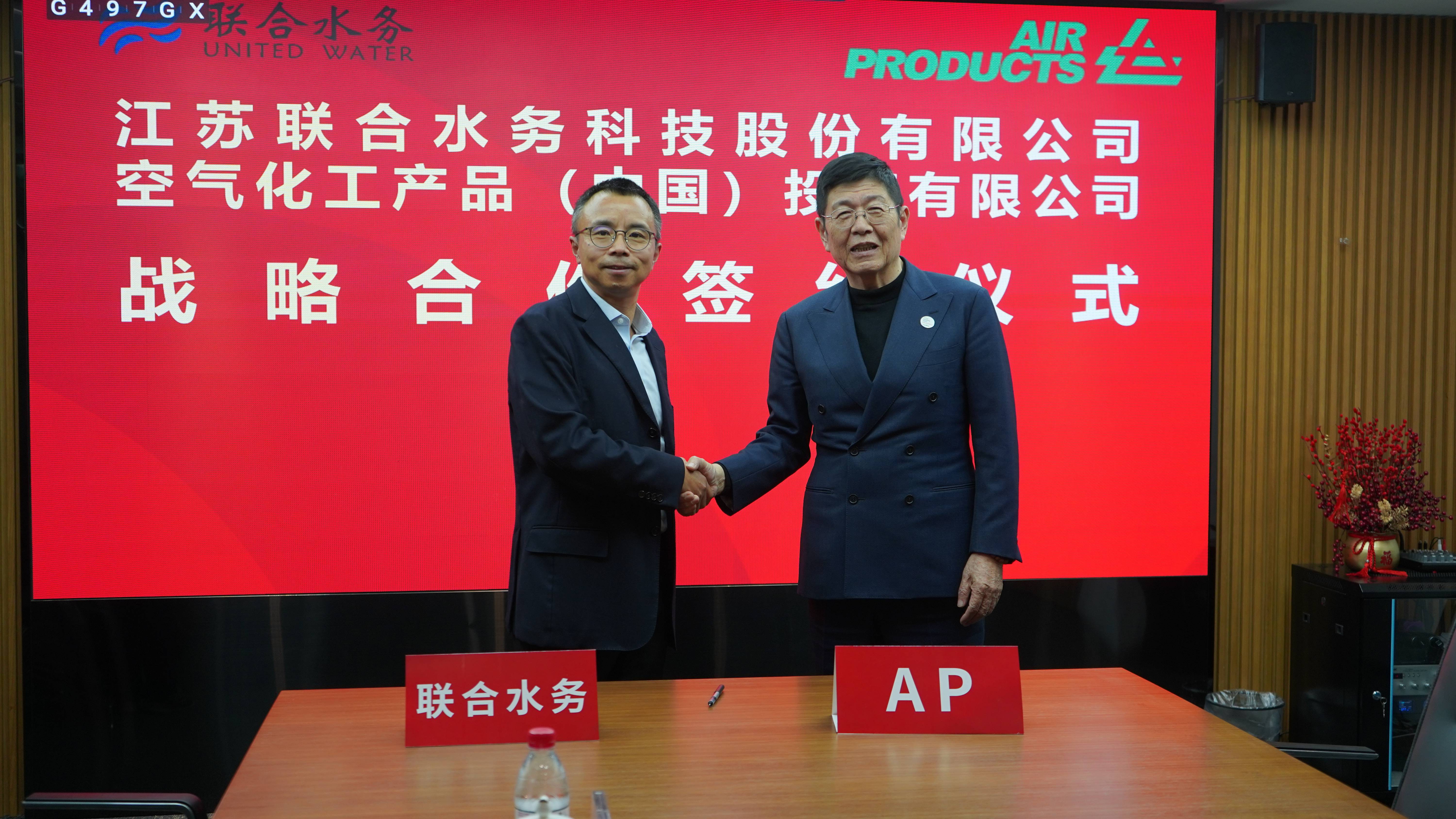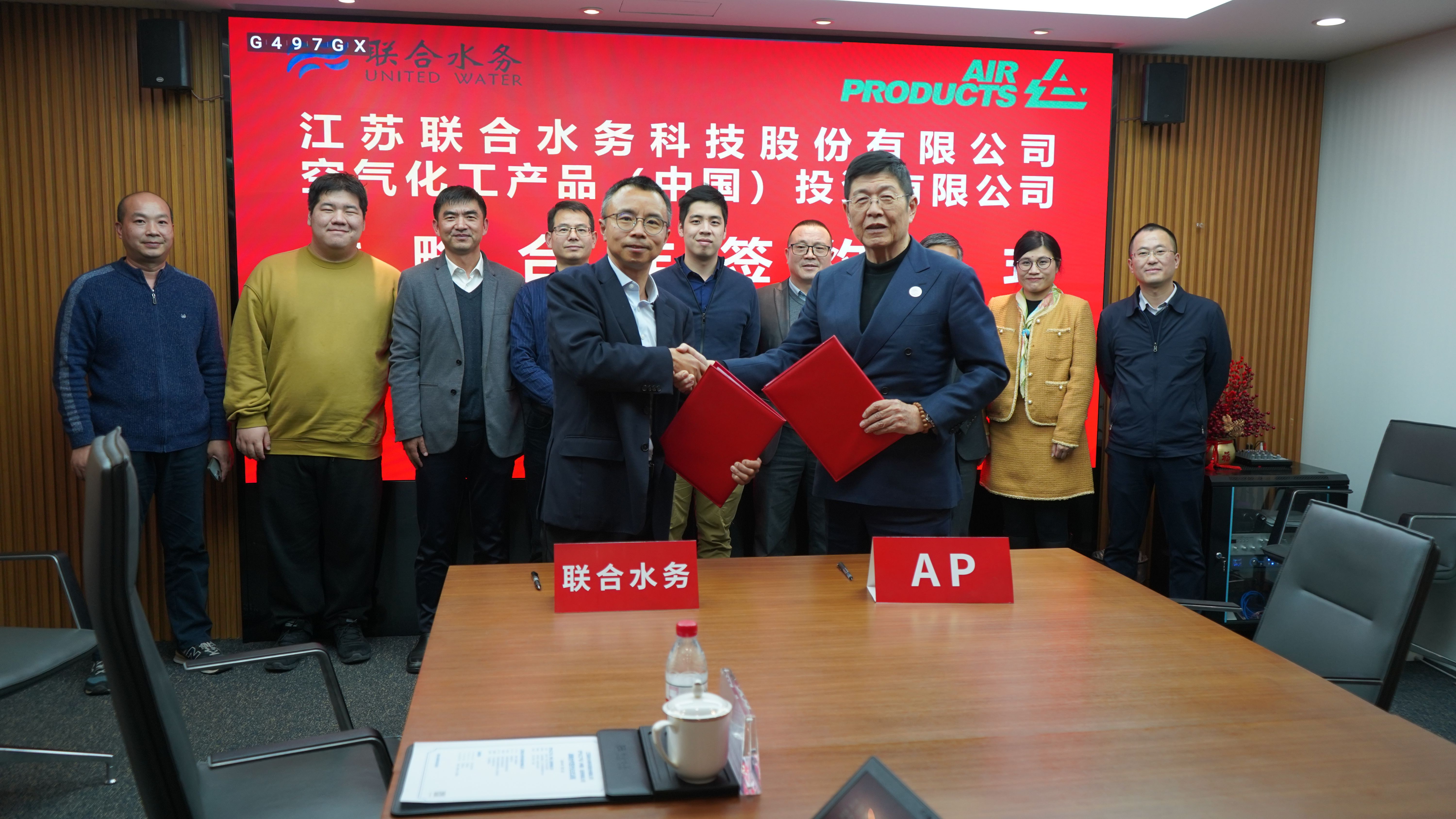 2024年1月3日下午,江蘇聯(lián)合水務(wù)科技股份有限公司與空氣化工產(chǎn)品(中國)投資有限公司在滬簽署了戰(zhàn)略合作協(xié)議。聯(lián)合水務(wù)集團(tuán)董事、高級副總裁陳樵先生和空氣化工產(chǎn)品(中國)投資有限公司工業(yè)氣體業(yè)務(wù)發(fā)展副總裁馮云舟先生,代表雙方簽字。聯(lián)合水務(wù)集團(tuán)高級副總裁羅斌先生、總裁助理兼投資發(fā)展部總經(jīng)理豐洪斌先生,空氣化工產(chǎn)品(中國)投資有限公司業(yè)務(wù)發(fā)展經(jīng)理季洪輝先生、技術(shù)經(jīng)理陶永福先生等出席了簽約儀式。