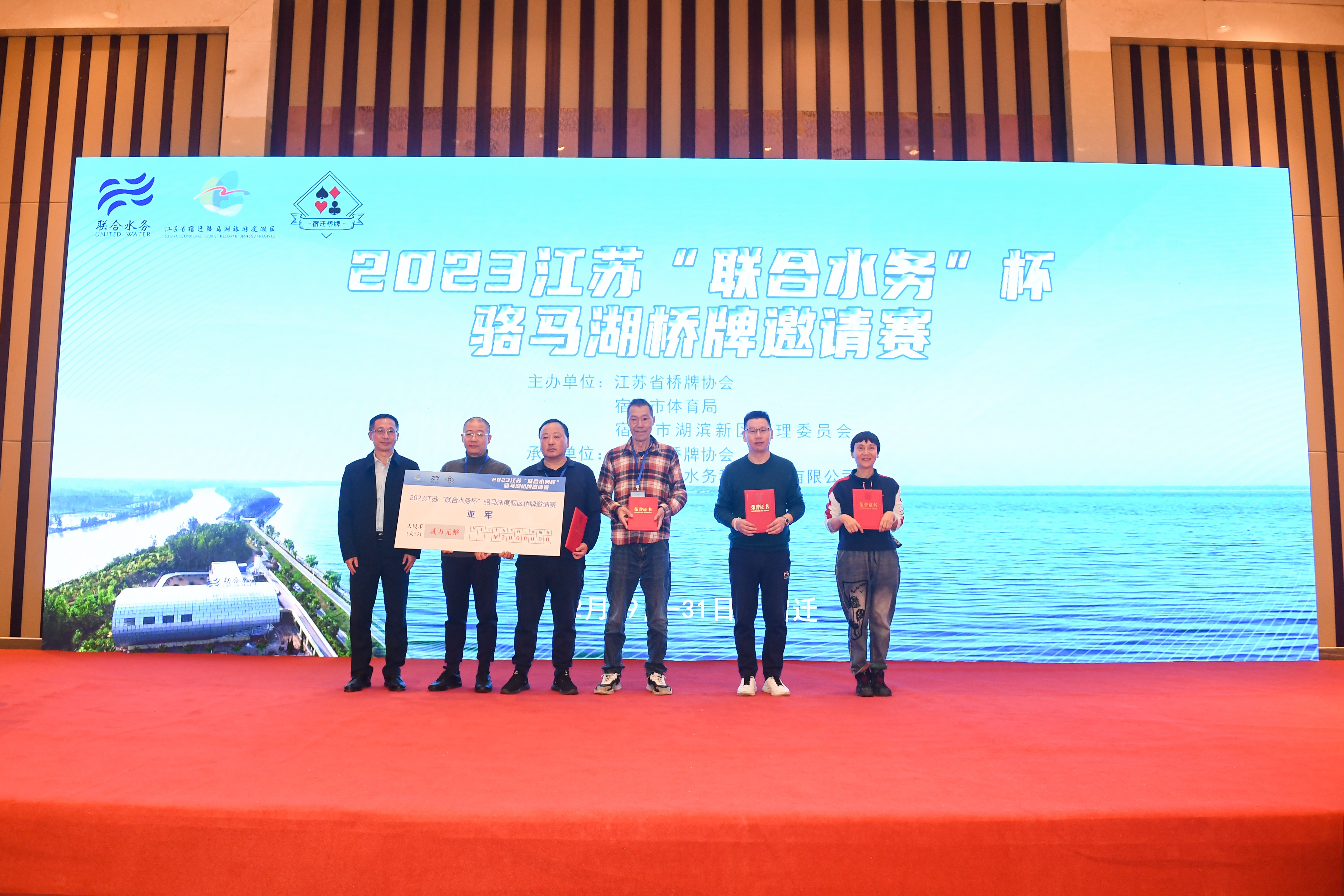 2023年12月31日,由江蘇省橋牌協(xié)會(huì)、宿遷市體育局、宿遷市湖濱新區(qū)管理委員會(huì)主辦,宿遷市橋牌協(xié)會(huì)承辦,江蘇聯(lián)合水務(wù)科技股份有限公司獨(dú)家冠名舉辦的2023江蘇“聯(lián)合水務(wù)”杯駱馬湖橋牌邀請(qǐng)賽在美麗的駱馬湖畔圓滿(mǎn)收官。