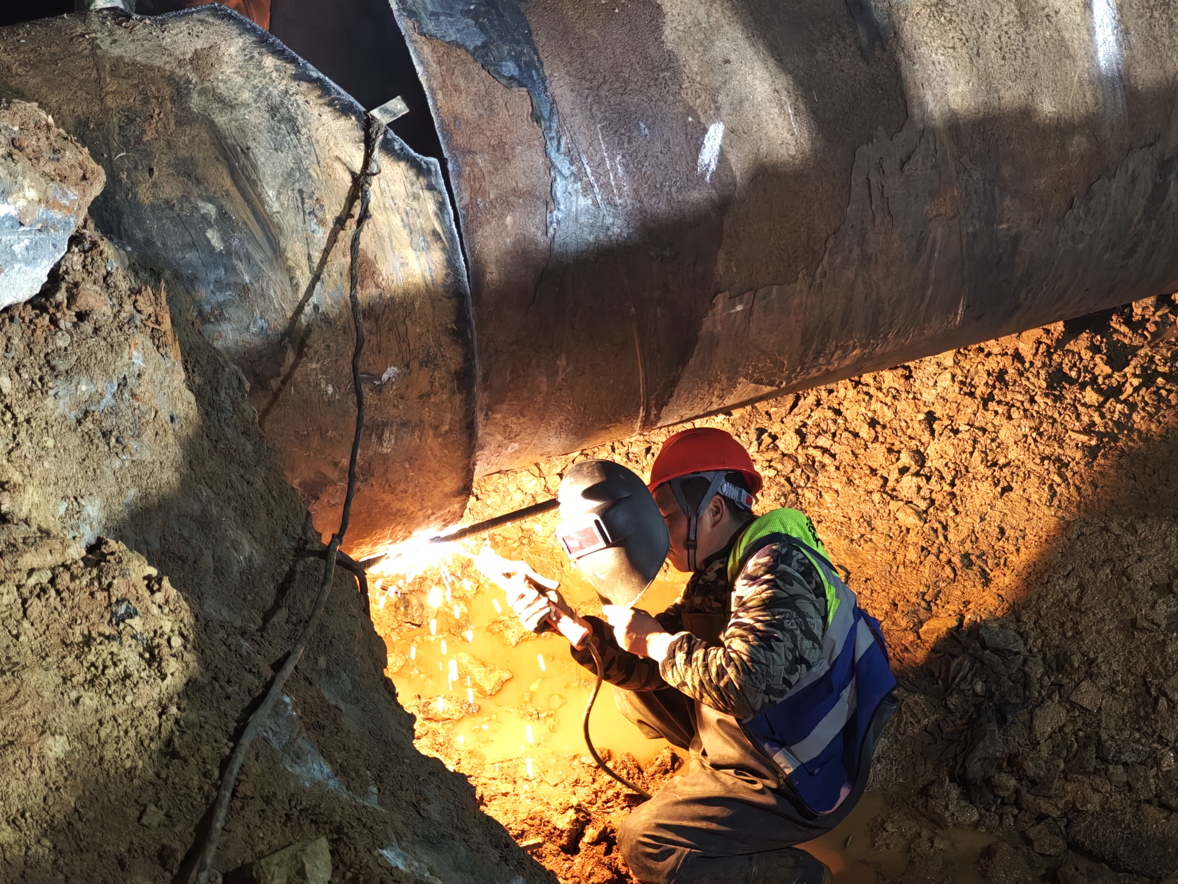 搶修隊伍也克服了DN1200供水主管道余水較多、破除混凝土支墩、風化巖土質開挖、爆管處正下面緊挨有三根長途傳輸通訊線管等施工困難,于3月6日24:00完成搶修,經過3個半小時的維修管件砼管接頭處養護,緩慢開啟DN1200主閥門送水,最終,3月7日4:00,在市領導要求的時間內所有低壓或無水壓高位已全部恢復正常供水。