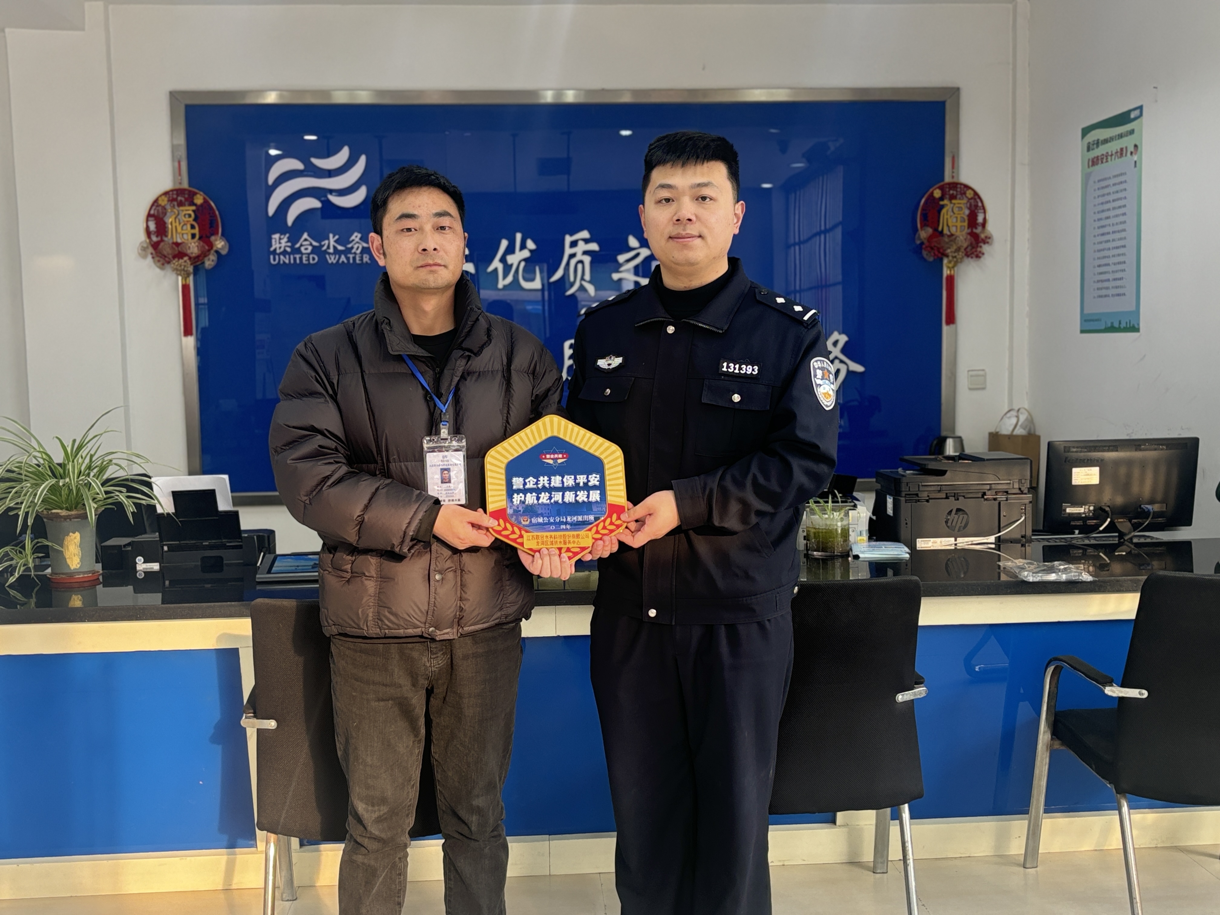 近日,宿城公安分局龍河派出所向龍河區域供水服務中心頒發了“警企共建保平安、護航龍河新發展”牌匾。這不僅警企之間的緊密合作的象征,更是對聯合水務努力維護地區安全與穩定、推動地區經濟發展的高度肯定。