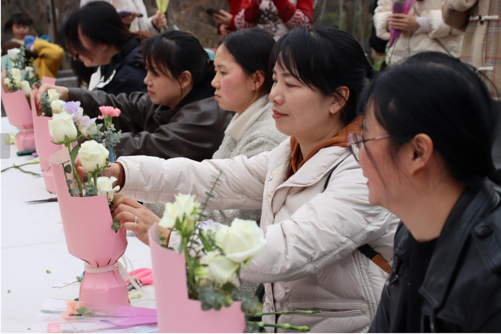 春風(fēng)化雨潤芳華,灼灼其華正當(dāng)時。值此“三八”國際婦女節(jié)來臨之際,聯(lián)合水務(wù)湖北區(qū)域咸寧各公司以“花樣年華·水潤芳華”為主題,于3月8日在汀泗橋鎮(zhèn)半畝塘藝術(shù)村舉辦了一場集溫情、藝術(shù)與活力于一體的專屬盛宴。近百名女職工穿越春日暖陽,共赴這場屬于她們的春日之約。 藝術(shù)田園邂逅美好 活動在“遇見美好”的簽到墻下拉開序幕,簽到、合影、拍照、獻(xiàn)花、K歌、打卡博物館……放下工作的疲憊,行走在藝術(shù)田園的路上,時間也仿佛在此刻定格。 ![]() 指尖綻放花樣年華 插花工坊里,花藝?yán)蠋熞浴胺既A悅己”為主題演繹創(chuàng)意美學(xué)。活動現(xiàn)場花香撲鼻,女教職工們在歡聲笑語中,暫時忘卻工作和生活壓力,沉浸在花藝創(chuàng)作帶來的寧靜與愉悅之中。工會主席林立輕撫親手制作的花束禮盒:“平日總在傾聽他人需求,今天終于能專注呵護(hù)內(nèi)心的美好。” ![]()