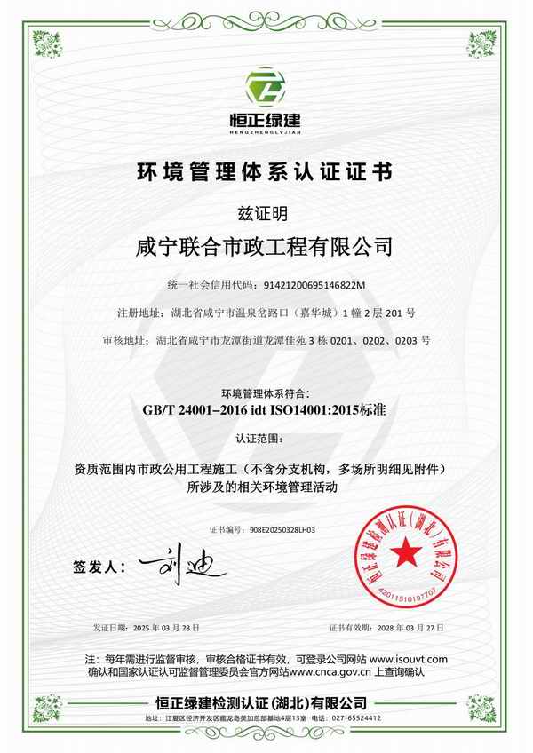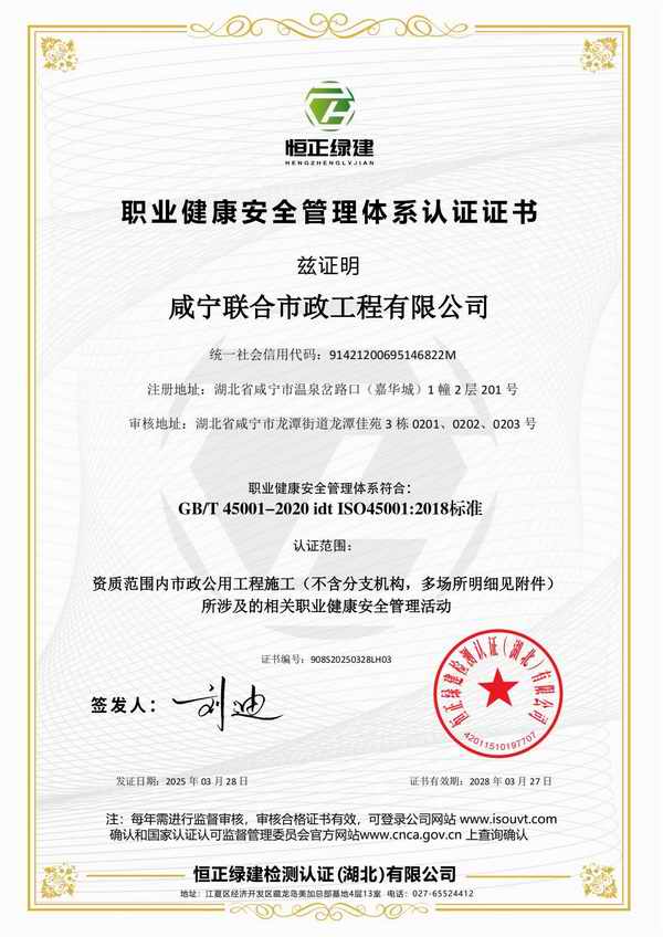 未來,咸寧聯合市政工程有限公司將繼續堅持高標準、嚴要求,不斷優化和完善三大體系,提升公司的服務質量和環境管理水平,保障員工的職業健康安全。同時,公司也將積極履行社會責任,為咸寧市的市政建設和城市發展做出更大的貢獻。