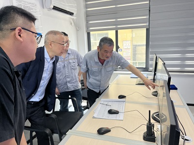 4月28日,聯合水務董事長兼總裁俞偉景、高級副總裁羅斌、建管中心總經理葉峰一行蒞臨桐鄉申和水務有限公司視察指導,桐鄉申和水務有限公司總經理高軍全程陪同。 上午俞總一行蒞臨桐鄉公司,實地視察桐鄉公司廠區各工藝單元的生產運行情況。先查看了桐鄉公司工業污水處理建設項目的改造地、高總現場介紹了該項目的工程概況、前期進展情況、改造方案及后續重點工作等,葉總進行了細節補充。隨后又視察了出水口、生物指示池、CASS池、二沉池等區域。廠區視察結束后,俞總一行來到辦公樓化驗室和中控室,了解活性污泥鏡檢的情況、水質情況和在線實時監控情況。