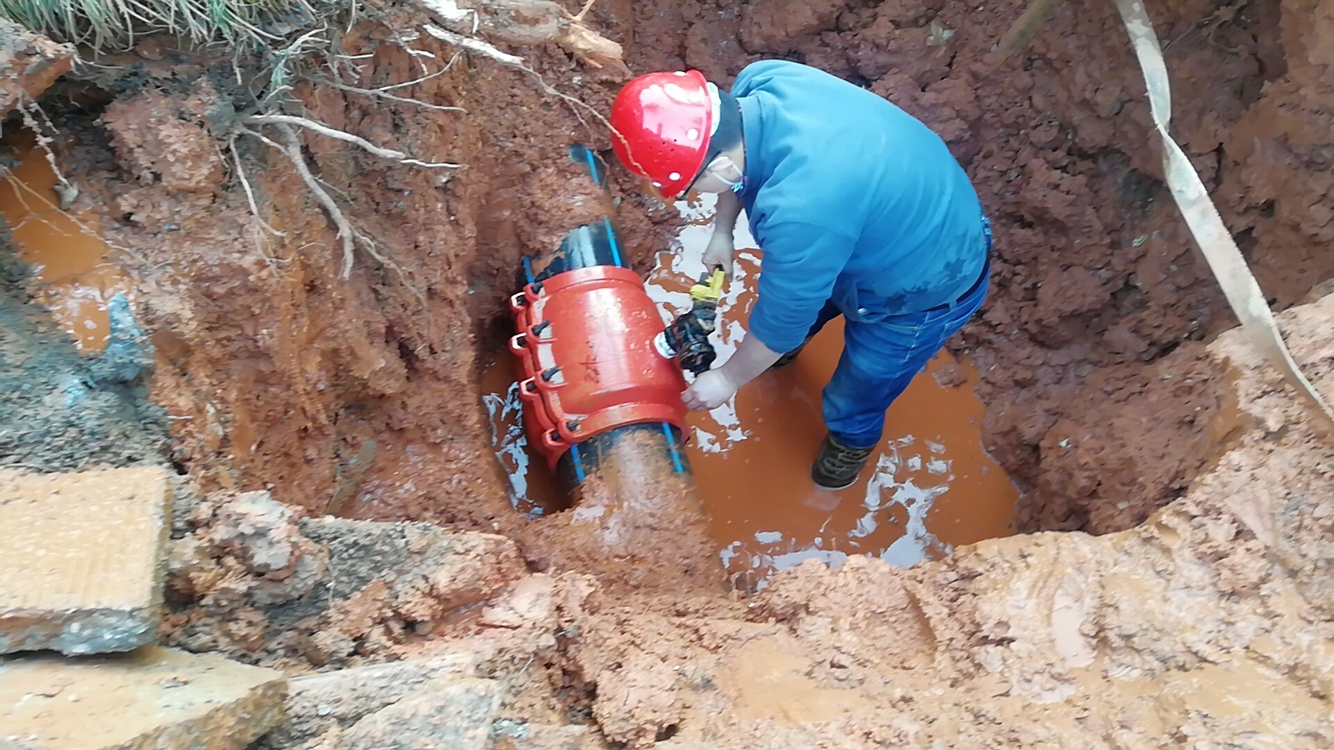 功夫不負有心人,在搶修組負責人的努力下,2月1日上午,終于從40余公里外調配到一臺挖掘機,加快搶修進程,預計今晚20:00完成搶修,確保南山片區居民正常用水。