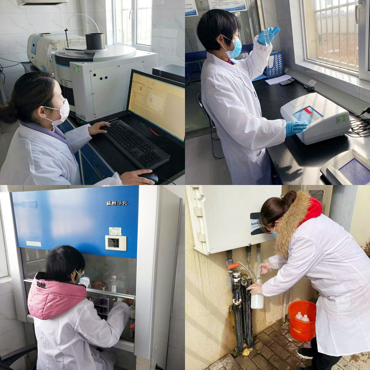 圖2:堅守一線 確保生產 四、加密監測、確保水質 作為水質安全的守護者,水質檢測中心人員一如既往地穿梭在示范區,從原水、過程水、出廠水到管網水加強水質監測。他們說:“越是關鍵時刻,越要恪守初心,全力保障好整個示范區的用水安全!”
