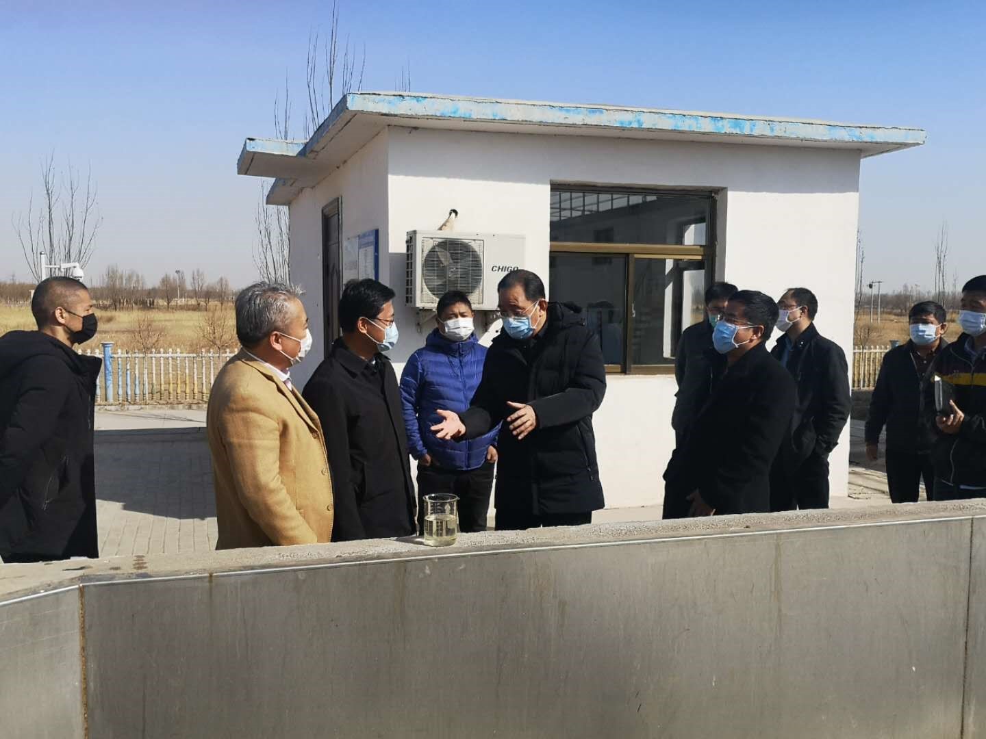[ 寧夏回族自治區(qū)黨委副書(shū)記、銀川市委姜志剛書(shū)記一行在寧夏賀蘭聯(lián)合水務(wù)污水廠總排口查看出水水質(zhì) ]