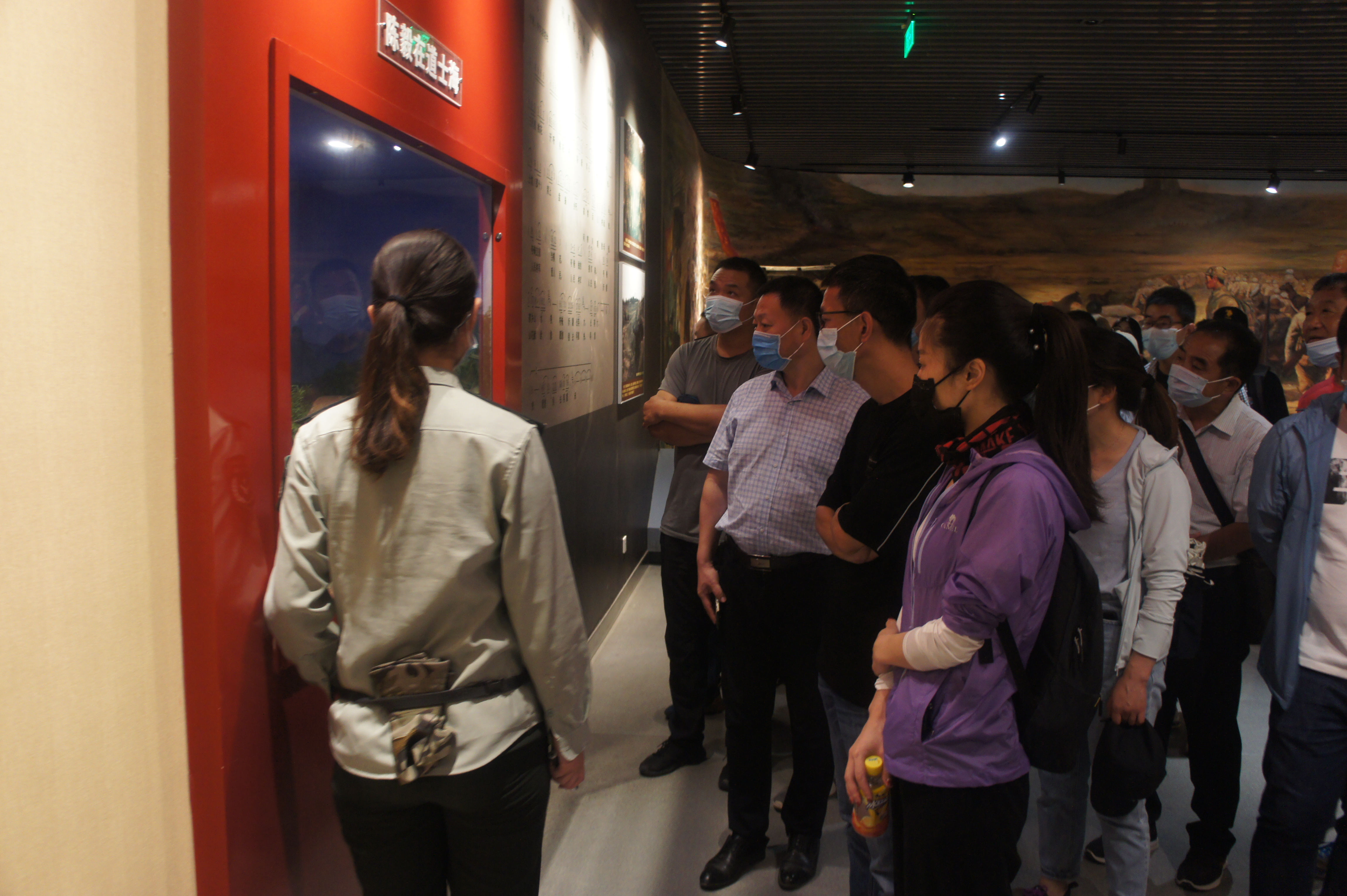 圖1:在孟良崮戰(zhàn)役紀念館前合影留念 接下來,正式入館參觀。隨著講解人員的引導(dǎo),大家激情豪邁地踏入紀念館,秩序井然,認真肅穆地傾聽講解,仔細觀看一件件陳列品,腦海中不斷閃現(xiàn)著戰(zhàn)場的壯烈場景,緬懷英勇的革命先烈,感懷今天幸福生活的來之不易。當(dāng)講解員介紹到孟良崮戰(zhàn)役是一場人民戰(zhàn)爭時,老區(qū)人民為支持解放軍,自動組成后勤隊,共提供了1200萬人次的戰(zhàn)地服務(wù),有的是全家齊上陣,有的姐妹同上場,其中,最為感人的是“沂蒙六姐妹”支援戰(zhàn)斗的光輝事跡,讓人感受至深。