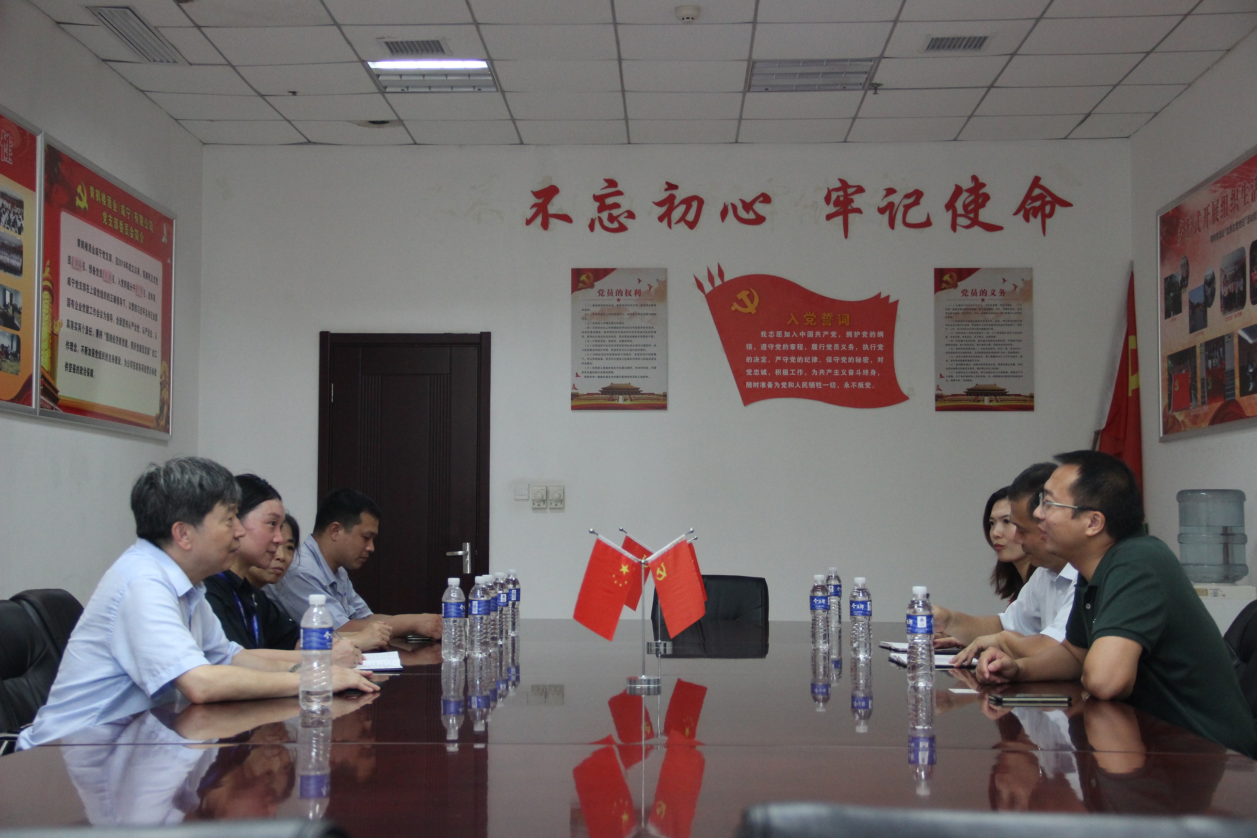 圖2:黃鶴樓酒業座談會 座談會上,毛總與黃鶴樓酒業負責人就供水服務、用水需求和企業發展規劃進行了細致的交流。李總談到,近年來,切身感受到了咸寧聯合水務在供水服務中的貼心與用心,疫情對企業影響很大,但聯合水務在供水服務中不僅保證了正常供水,還讓企業順利享受了水費相關優惠政策,為企業平穩渡過難關幫扶助力,服務工作做到了便捷、高效。同時,李總還提出,希望今后能在市民參觀活動中與咸寧聯合水務采取聯誼形式進行,讓市民更清楚地了解自來水制作工藝與黃鶴樓酒的釀制工序。聽完李總的建議,毛總表示,今后將進一步加強與黃鶴樓酒業的溝通、交流,共同攜手為推動咸寧高質量發展群策群力!