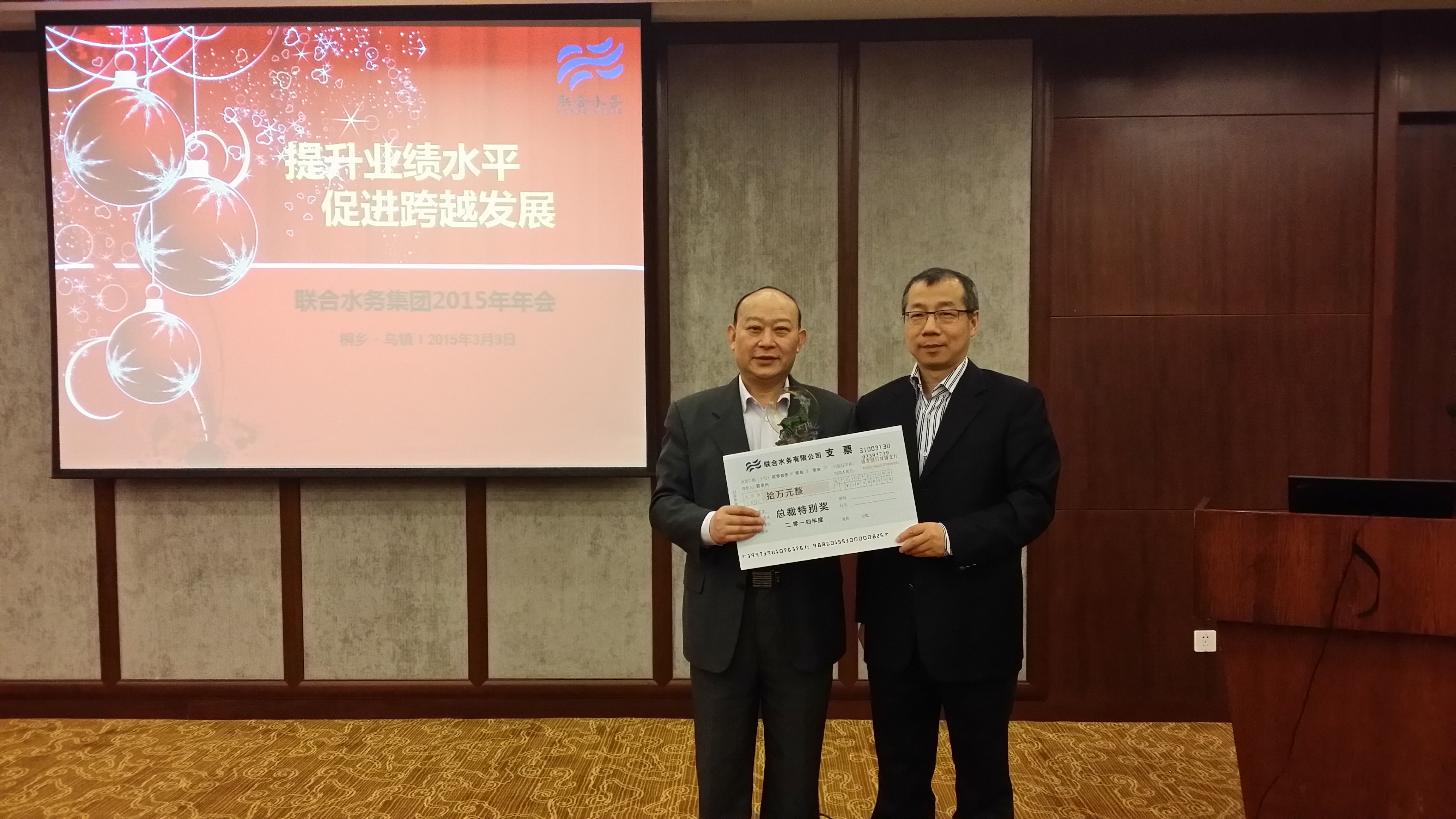 『夏總榮獲“總裁特別獎”』 上善若水 源遠流長 壯士暮年而基業長青。作為聯合水務項目團隊“元老”之一,夏承光將前大半生獻給了水務事業,獻給了聯合水務的成長壯大。他說,水乃生命之源,滋養萬物而生生不息,與水結緣,與聯合水務結緣,踐行聯合水務“供優質之水、服誠信之務”的經營宗旨,我們付出,我們努力,我們奮斗,城市可以發展,社會可以進步,老百姓生活水平可以提高,我們雖苦猶榮,是值得的。長風破浪會有時,人間正道是滄桑,使命光榮,任重道遠。在夏承光老一輩聯合水務人的帶領與感召下,一代代聯合水務人將不忘初心,接續奮斗,開新天,辟高地,再創未來。