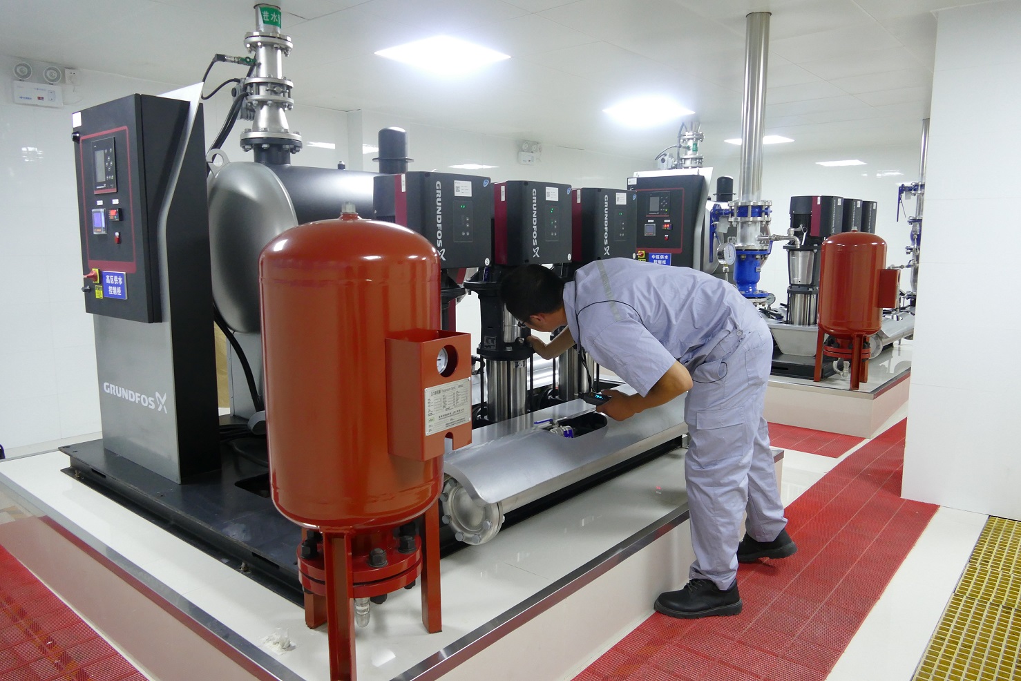 圖2:生產人員巡檢 機電設備部把好“設備安全”關 每年的高峰供水來臨前,宿遷銀控自來水有限公司都會制定詳實的設備保養、維護、改造計劃,確保各項設備運行狀況良好,同時要求,在高峰供水期間,每日要對機組進行加密巡檢,特別是對易產生高溫運轉的設備進行專項養護。目前該公司需檢測、檢修的主要、重要設備遍布于兩個水廠、7座泵站共1257臺,工作人員根據片區,不間斷進行巡查。除了點巡檢,機電設備部所有人員排班進行夜間值班,保證24小時在廠,出現設備問題立即解決,保障生產安全。