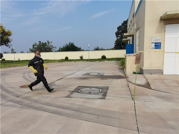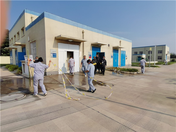 “鹽酸間外側儲液罐管道漏液,鹽酸正在泄漏,情況十分緊急,請立即來現場處置!” 9月10日9時10分,隨著值班電話鈴聲的急促響起,一場鹽酸泄漏應急演練在三門峽聯合水務有限公司緊急展開。演練涉及制水部、水質檢測中心、人事行政部等多個部門,公司全員參加了演練和觀摩。 本次演練以“消除安全隱患,筑牢安全防線”為主題,演練開始前,全員學習了廠內;返奶匦、預防和急救、泄露等處置措施,并現場示范了正確使用與佩戴安全防護用品的方法。險情突發,應急指揮部立即啟動應急預案,各小組快速進入應急部署,穿戴防護用品進行現場搶險救援,工作人員撤離至安全區域。經過搶險,泄露點成功堵漏,鹽酸泄漏得到控制,未對環境和生產造成影響。