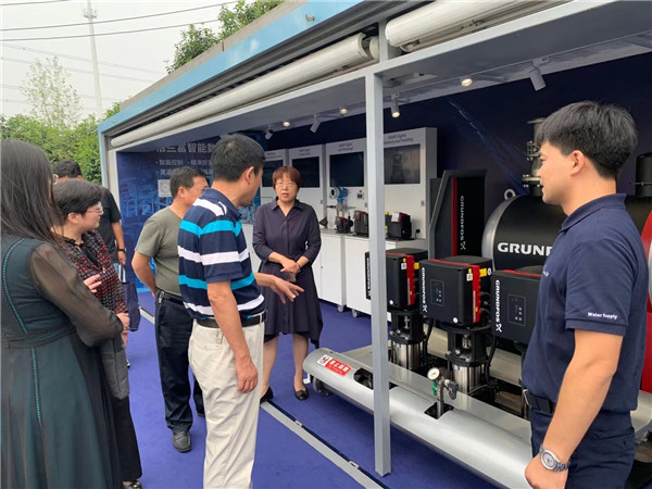 圖1:大篷車布場 設備銷售部是我公司經營對外業務的部門,主要負責蘇北地區格蘭富供水設備的銷售以及標準化泵房的量身定制。經過整個團隊的不懈努力,目前,在宿遷周邊地區都陸續有了以格蘭富成套設備為核心的標準化泵房形象工程,得到了客戶們的認可和好評。 公司以領先的技術水平,從前期勘測、設計、設備選型,到中期泵房裝修、管路安裝以及后期完整的售后服務體系,為我們的客戶提供完整的方案和技術支持,讓客戶們省心、放心。 這次大篷車路演展示活動大大增進了我們與客戶的合作關系,促進了水司單位之間的兄弟情誼。一方面,我們通過詳細講解讓客戶詳細深入地了解格蘭富產品的核心優勢;另一方面,帶著客戶在大篷車里零距離接觸設備,你問我答地解決了客戶在供水領域長久以來的疑惑和擔憂,真心實意地站在客戶的立場為客戶排憂解難,真正做到了讓客戶信服和認可。