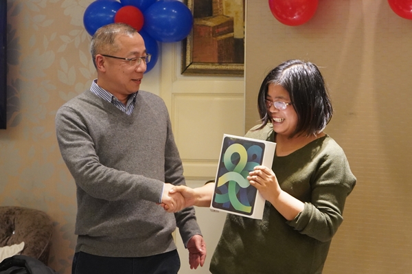 總裁俞偉景發(fā)表活動(dòng)致辭 “鴻運(yùn)當(dāng)頭”的驚喜抽獎(jiǎng)把整個(gè)活動(dòng)推向高潮。在每一個(gè)大獎(jiǎng)開(kāi)獎(jiǎng)之前,大家都屏神凝氣,熱血沸騰;開(kāi)獎(jiǎng)后,中獎(jiǎng)的同事為鴻運(yùn)歡呼雀躍,其他同事也熱烈鼓掌祝賀,為活動(dòng)增添了無(wú)數(shù)歡聲笑語(yǔ)。在活動(dòng)即將落幕的時(shí)候,俞總帶領(lǐng)大家共同唱響生日歌,為近期慶生的同事舉辦生日會(huì),并為壽星們送上書(shū)籍。生日會(huì)傾注了集團(tuán)對(duì)每一位員工的關(guān)懷與愛(ài)護(hù)。現(xiàn)場(chǎng)活躍的氣氛極大的調(diào)動(dòng)了每一位員工的企業(yè)融入感,在寒冬里溫暖了大家的心房。