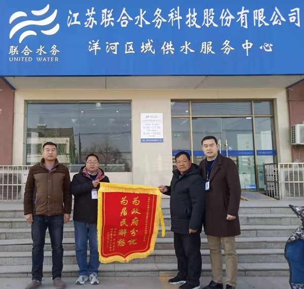 | 排憂解難為居民,平安社區報平安——安社區給宿遷公司洋河區域供水服務中心送錦旗 | ||