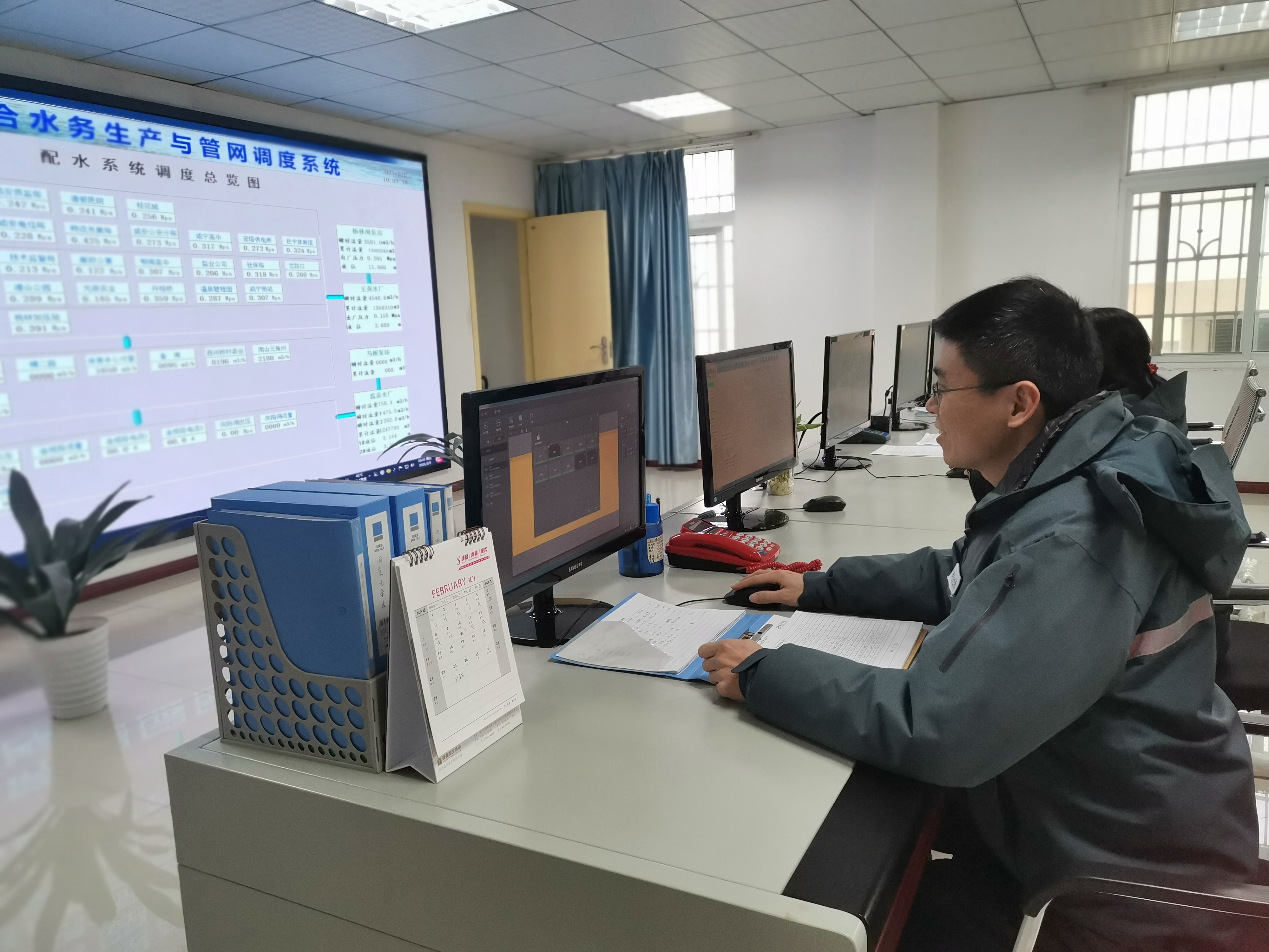 為確保節(jié)假日期間管網(wǎng)水壓平衡以及制水生產(chǎn)的穩(wěn)定,調(diào)度中心按供水方案保持24小時(shí)不間斷值班,根據(jù)在節(jié)期間用水實(shí)情,配合制水部合理組織供水生產(chǎn),做到科學(xué)合理調(diào)度,保證供水需求穩(wěn)定。同時(shí),水質(zhì)檢測中心加強(qiáng)節(jié)日期間水質(zhì)監(jiān)測力度,對供水范圍內(nèi)的所有水質(zhì)監(jiān)測點(diǎn)進(jìn)行全天候的實(shí)時(shí)監(jiān)測,讓廣大市民在節(jié)期間用水安心。