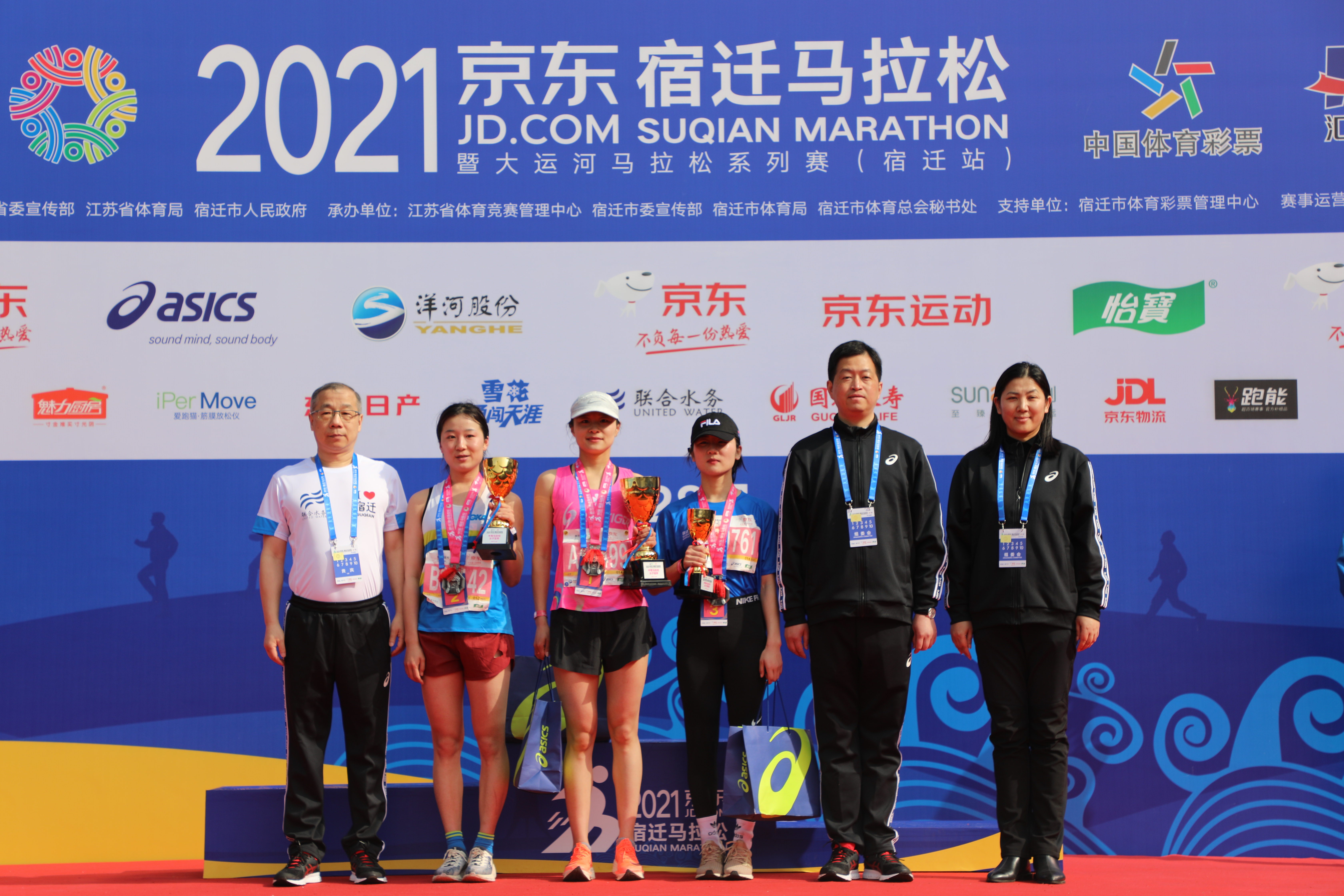 “聯合水務供優質之水,保障人民健康!”“聯合水務為宿遷的綠水青山努力奮斗!”緊隨大旗身后,聯合水務全馬跑團由集團高級副總裁陳樵、人力資源部總經理楊麗霞率隊;聯合水務集團總裁辦主任豐洪斌則帶領17人的半馬跑團,挑戰賽道,戰勝自我。 “你在賽場揮灑汗水,我在場外擂鼓吶喊。”4支拉拉隊號角不斷,旗幟飄揚,吶喊聲、助威聲響徹云霄,激勵著萬名跑者、聯合水務能量跑團奮勇前行。服務隊人員身著聯合水務服務隊服裝,忙忙碌碌,穿梭于人群與各個服務點,做好各項服務保障工作。 在半馬結束后記者采訪了來自湖北的唐紅燕,她也是聯合水務的一名員工。“我是第一次來宿遷,沒想到這里這么漂亮!市民也非常熱情,一路上都在為我們加油助力!”雖說參加過多次馬拉松,但她還是被宿遷的風土人情吸引住了。她坦承,來宿遷參賽來對了! 在半馬終點——宿遷市奧體中心,俞偉景受邀為半馬女子項目獲獎者頒獎,對她們巾幗英雄的風采給予了高度贊揚。