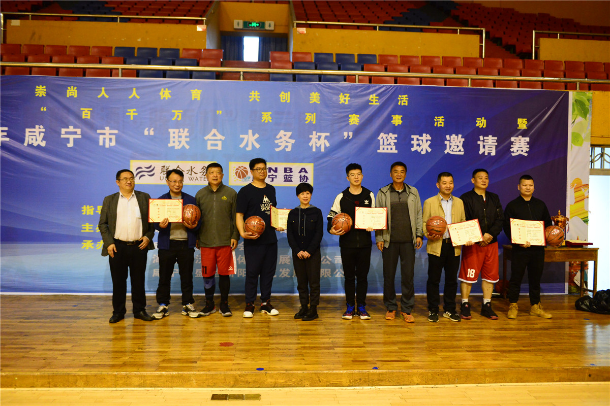 活動合影 本屆邀請賽是為了活躍員工業余文化生活,增強團隊凝聚力和戰斗力,以球會友、廣交朋友,提高聯合水務品牌效應,由咸寧市體育事業發展中心指導,咸寧聯合水務有限公司主辦,咸寧市籃球協會、湖北和沃運動體育發展有限公司、咸寧市盛世驕陽文化發展有限公司承辦的,市委市政府兩辦、市委組織部、咸安區、省王英水庫管理局、市廣電播電視臺、市住建局、市委市政府兩辦、咸安區政府辦、市稅務局、市生態環境局、市市場監督局、市紀檢委、區綠投和聯合水務咸寧區域等12支籃球隊參加此次邀請賽。
