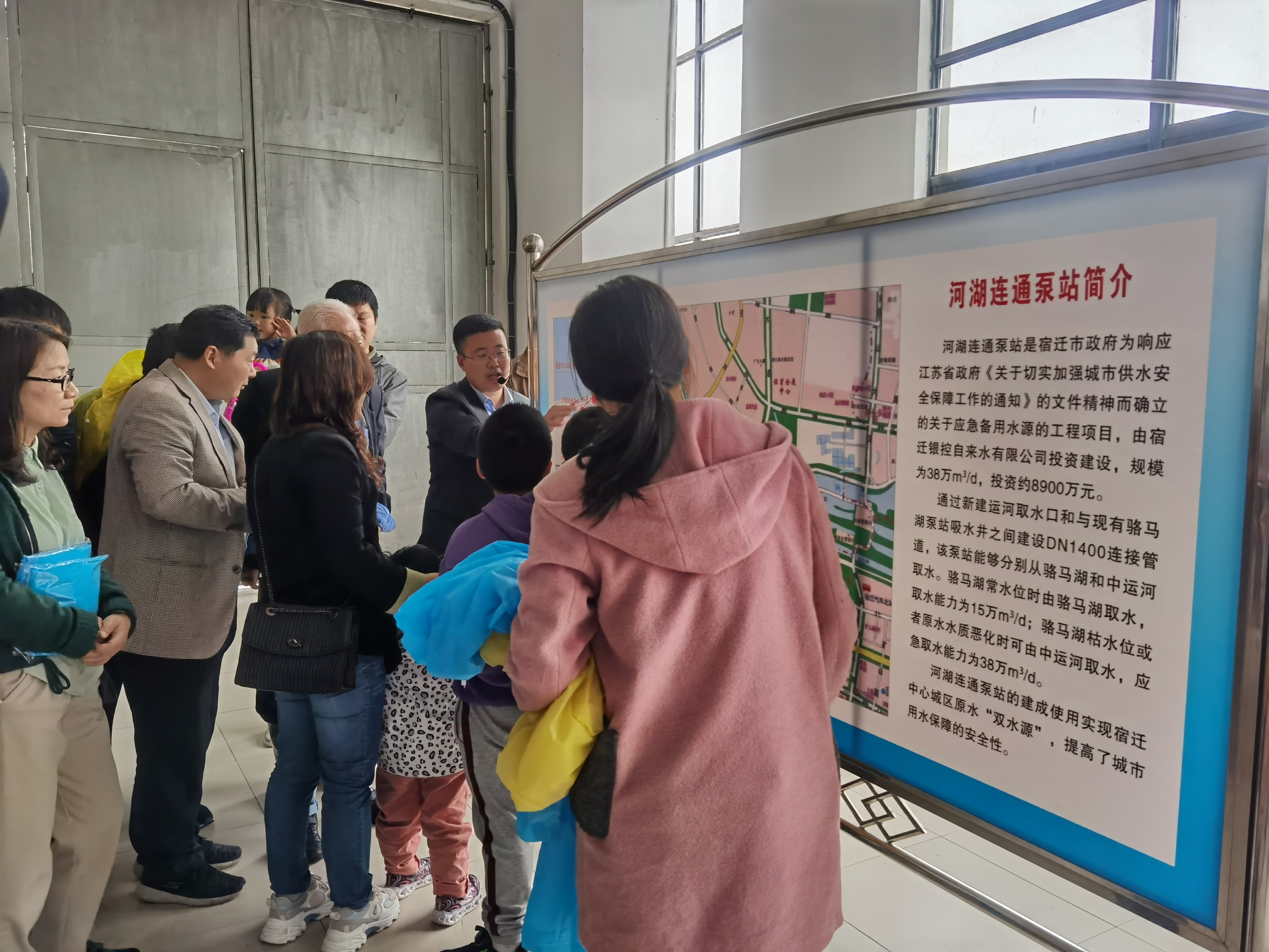 水是生命之源,彌足珍貴,節約用水是人類永恒的主題。今年5月11日—16日是我國第30個“城市節約用水宣傳周”,今年的主題是“貫徹新發展理念,建設節水型城市”。為大力宣揚節水理念,增強市民節水意識,5月15日,聯合水務宿遷供水公司與市住房和城鄉建設局、宿遷日報社共同舉辦了“一滴水的旅程”水廠開放日直播活動。參加活動的有熱心的市民代表、學生代表,還有市綠色環保協會的志愿者們,共計40余人。 小雨紛飛,依然沒能阻擋大家探秘自來水的高漲熱情。上午8:30,從宿遷日報社集中乘車出發,大家一路歡聲笑語,直奔第一站——駱馬湖飲用水源地。途中,市住房和城鄉建設局供排水中心朱泉主任為大家分享了一些節水小知識,孩子們踴躍提問,增長了節水知識和認識。到達駱馬湖水源地,望向浩瀚飄渺的駱馬湖,煙霧縈繞,一望無際,大家紛紛表示駱馬湖是宿遷人的母親湖,保護水源,就是保護城市命脈。在河湖連通原水泵站,大家參觀了送水泵房,聽取了該泵站的詳細介紹。