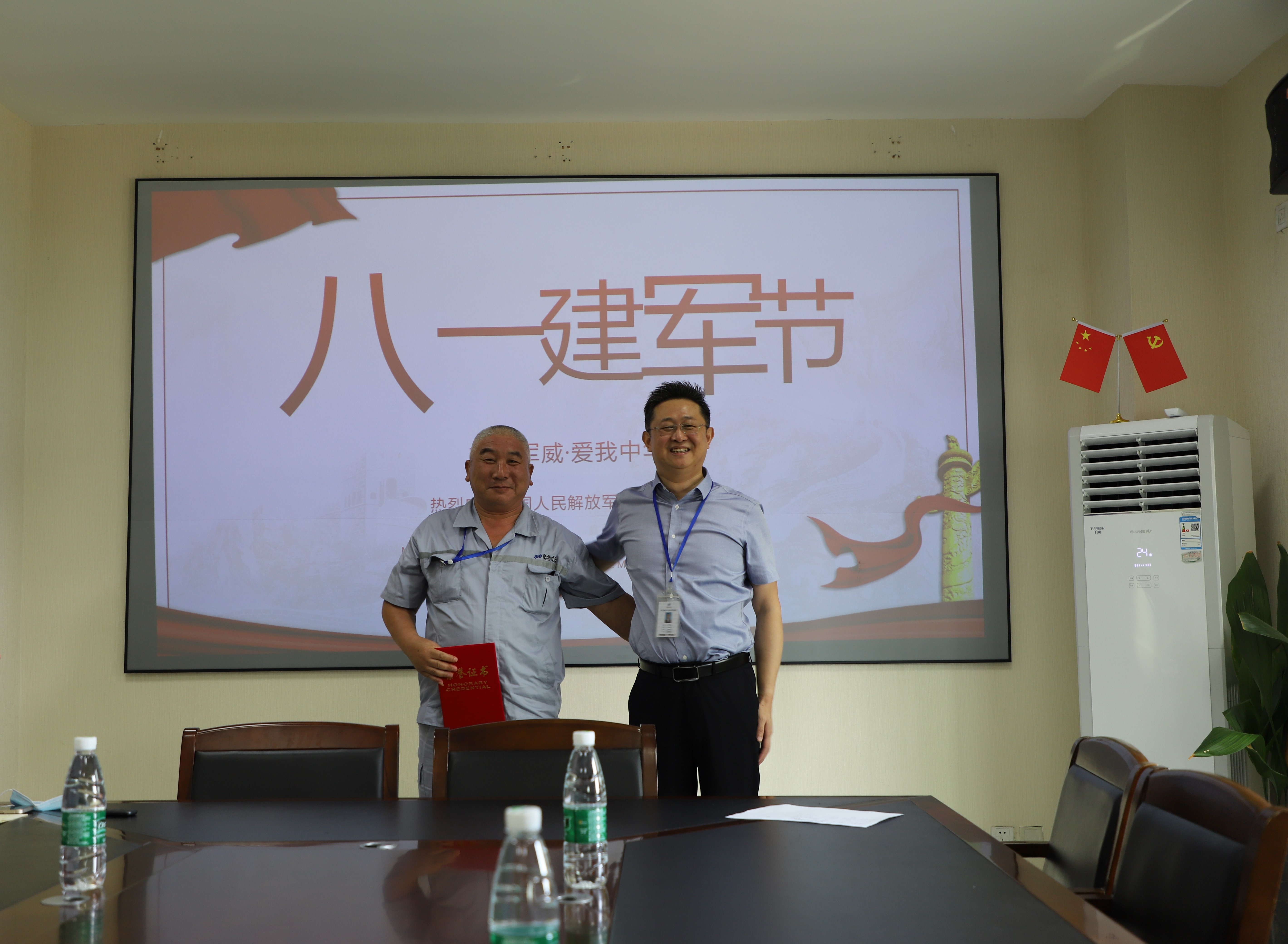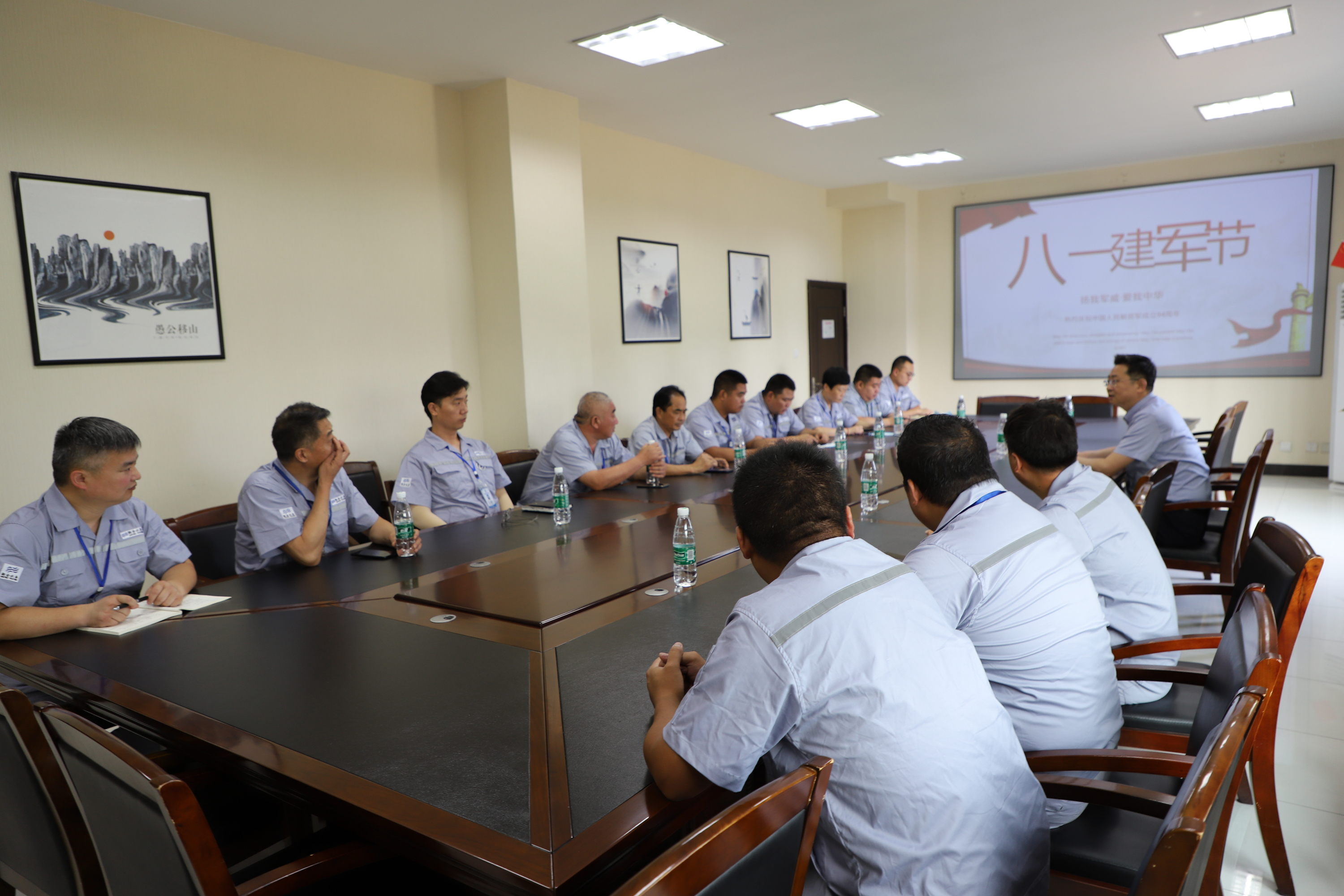 為慶祝即將到來的“八一建軍節(jié)”,江蘇聯(lián)合水務科技股份有限公司宿遷公司組織退伍在職員工開展慶祝“八一建軍節(jié)”活動。退伍不褪色,換裝不換心,曾經,錚錚鐵骨戰(zhàn)沙場,保家衛(wèi)國,而今,盡心竭力保供水,守衛(wèi)家園生命線。在這特殊的節(jié)日,向公司四十三名退伍軍人在職員工致敬!向全國光榮的軍人致敬! 7月30日上午,在公司二水廠二樓會議室,退伍軍人員工代表近20人集聚一堂。首先,也曾經一身戎裝的公司客服運營副總經理尹邦交,代表公司為評選出的五位“最美退役軍人”——周允勝、孟慶葉、韓江、臧十偉、馬強頒發(fā)了榮譽證書,對他們不忘軍人本色,繼續(xù)發(fā)揚軍人不怕苦、不怕累的精神,在平凡的供水崗位上忘我奉獻的高尚品質給予了充分肯定。