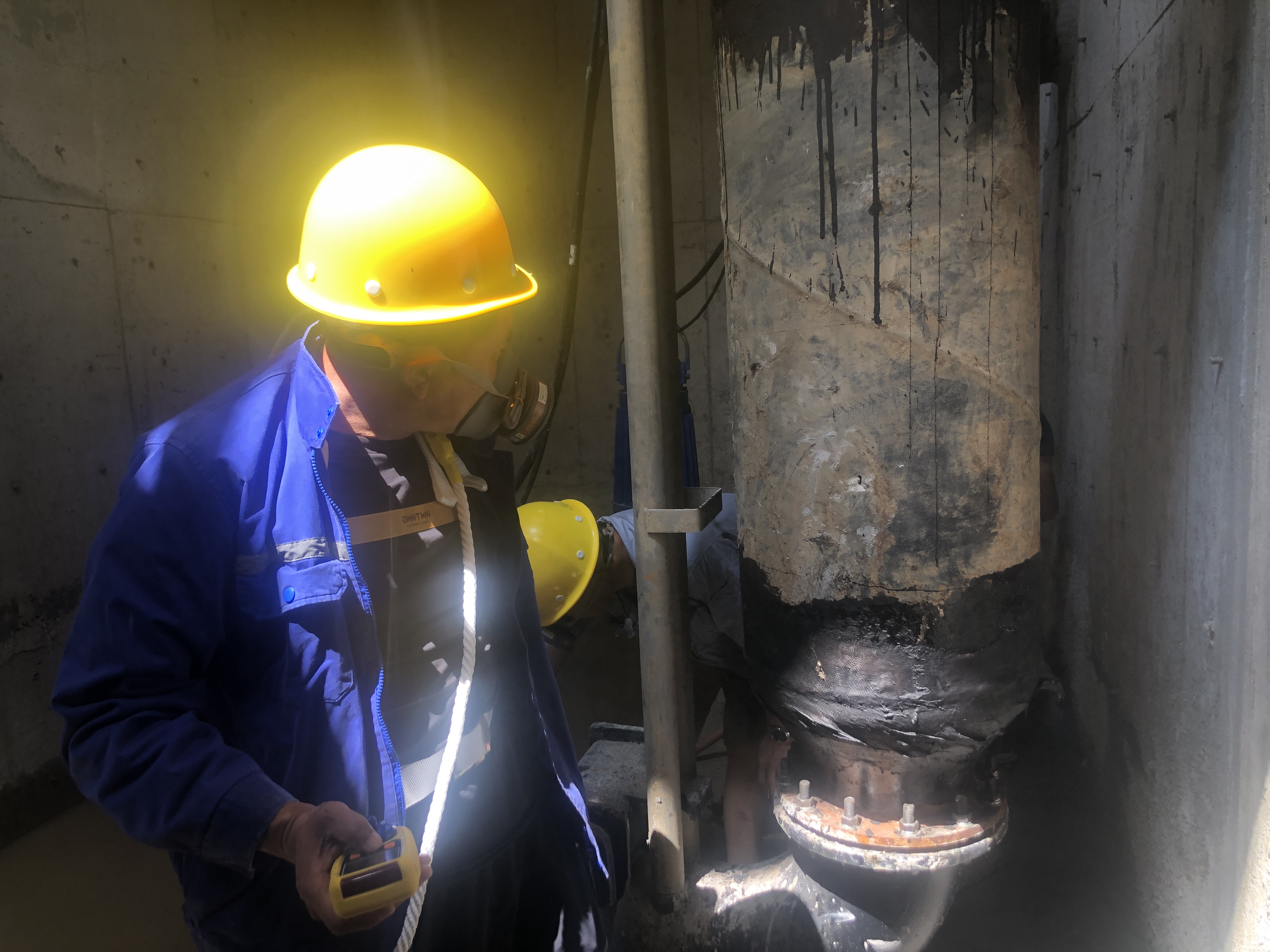 會后組織安全員及機修部門模擬泵房水泵故障搶修演練。運行人員在發現泵房水泵故障后立即上報分管領導,然后生產部門組織搶修小組,到達設備故障現場后首先對密閉空間進行通風,再進行密閉空間氣體監測,確認空間環境許可后,機修人員穿戴安全防護措施,在地面工作人員的監護下,下井進行維修作業,結束演練。