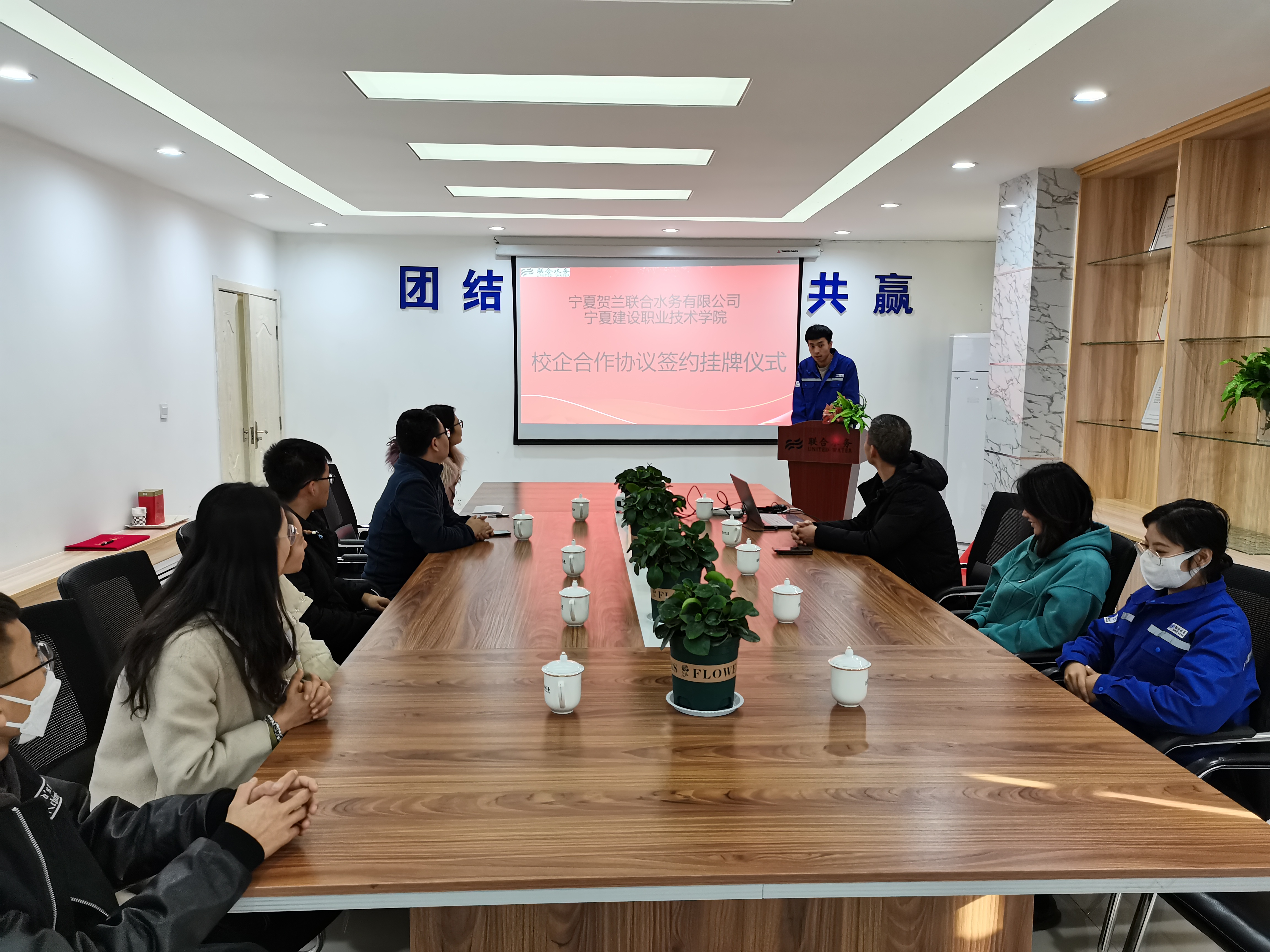 12月23日下午,寧夏賀蘭聯合水務有限公司與寧夏建設職業技術學院“校企人才戰略合作簽約儀式暨實訓掛牌儀式”在寧夏賀蘭聯合水務公司順利舉辦。