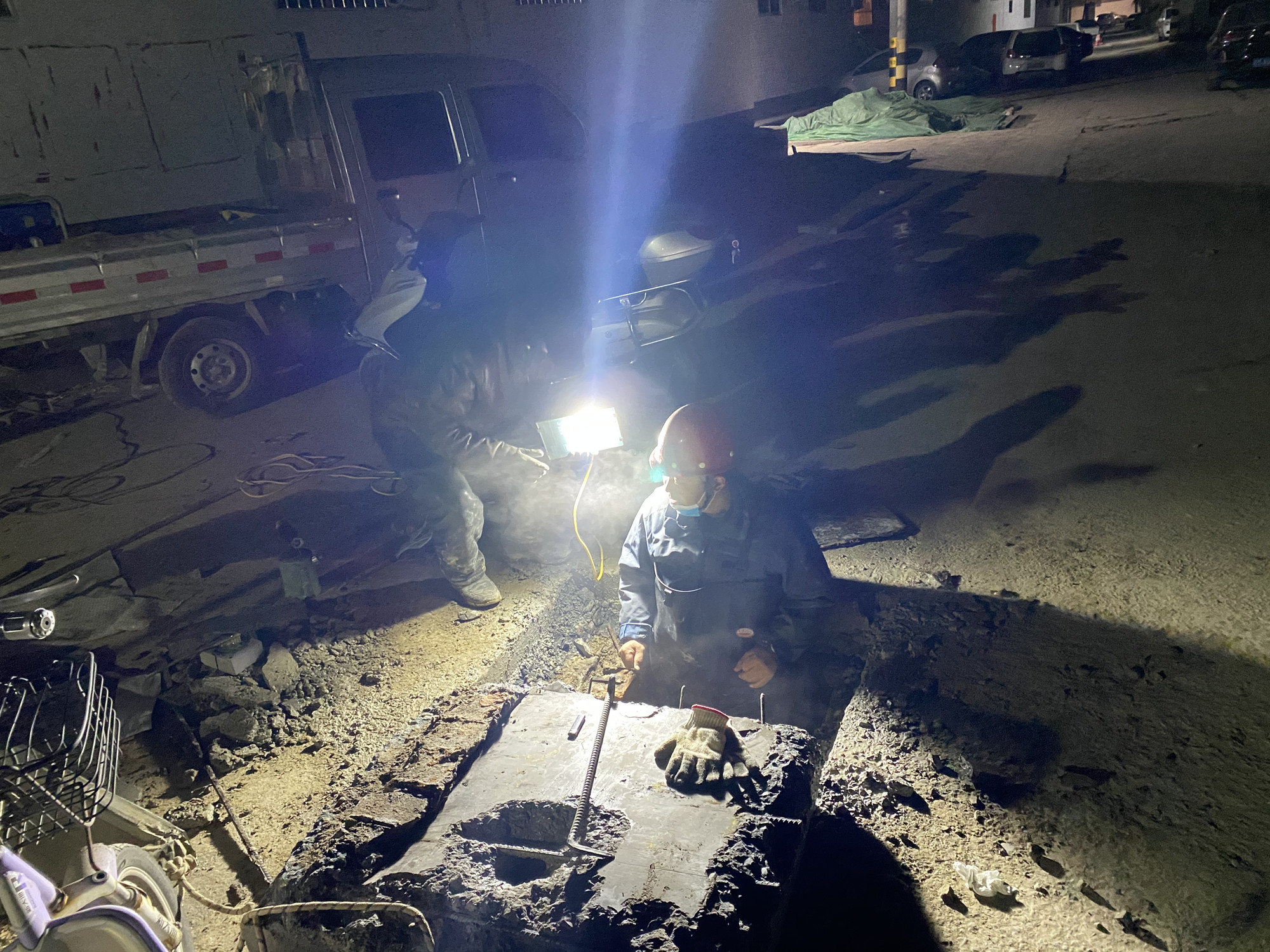 圖:漏水搶修現(xiàn)場