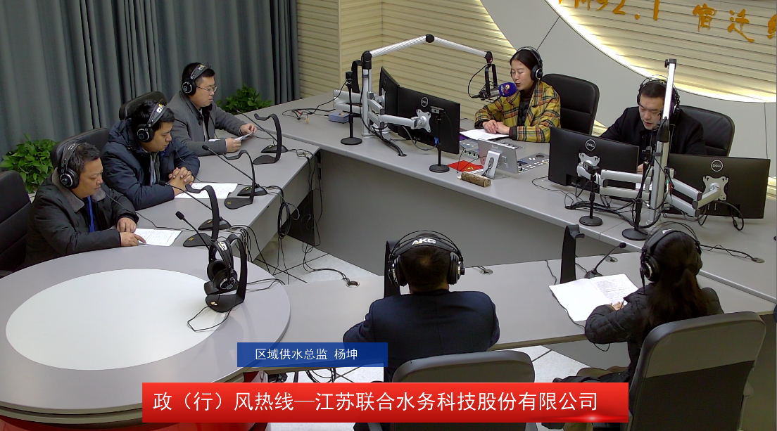 傾聽百姓心聲,切實為民解憂。近日,江蘇聯合水務科技股份有限公司宿遷供水公司區域供水總監楊坤帶領水質檢測中心、管網部、客戶服務部、質量安全部等相關負責人,共同走進宿遷市“政(行)風熱線”直播室,就供水方面的熱點問題與廣大用戶進行交流。