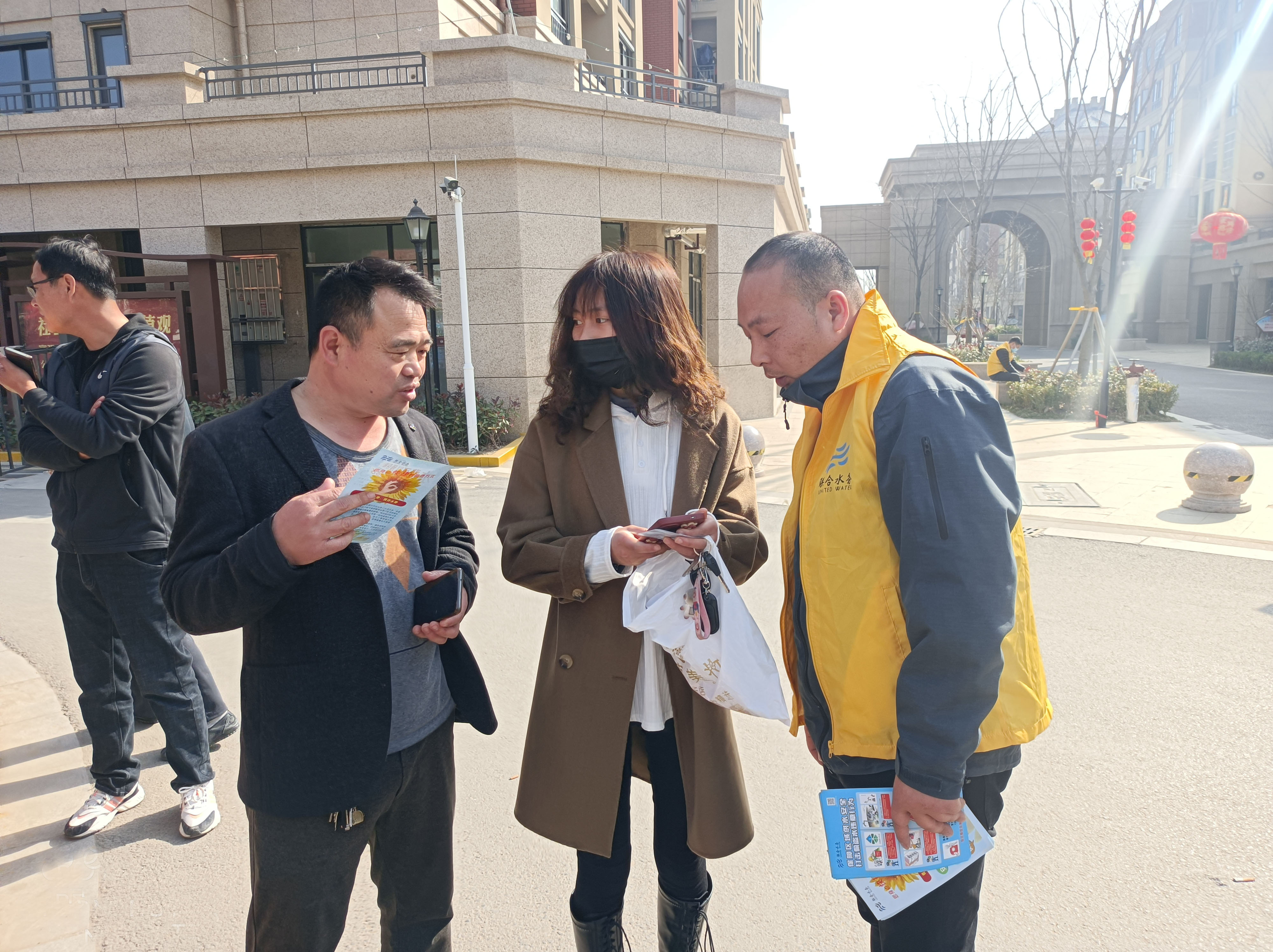 在居民喜遷新居的喜慶氛圍中,公司工作人員的到來讓居民幸福感倍增。辦理現場,工作人員有條不紊辦理信息登記、合同簽訂、服務卡發放、現場通水等一系列手續,一條龍服務節約了居民來回奔波和等候的時間。現場排隊間隙,工作人員向居民宣貫了宿遷市供水條例、水價、服務熱線等信息,并手把手教居民使用繳費APP。公司工作人員真摯熱情的服務,得到了現場居民的一致好評。