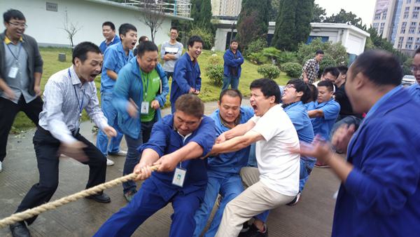 緊接著則是壓軸的拔河比賽。本次拔河比賽采取三局兩勝制,經(jīng)過(guò)抽簽,第一輪由行政污水聯(lián)隊(duì)對(duì)陣客服聯(lián)隊(duì),工程聯(lián)隊(duì)對(duì)陣生產(chǎn)聯(lián)隊(duì)。最終客服聯(lián)隊(duì)、生產(chǎn)聯(lián)隊(duì)勝出。在第二輪的比拼中,客服聯(lián)隊(duì)連勝兩局蟬聯(lián)冠軍。拔河比賽是公司歷年舉辦文體活動(dòng)的重頭戲,能高度展現(xiàn)團(tuán)隊(duì)成員協(xié)作統(tǒng)一的能力,更能體現(xiàn)全體成員團(tuán)結(jié)一致,奮勇拼搏的精神風(fēng)貌。